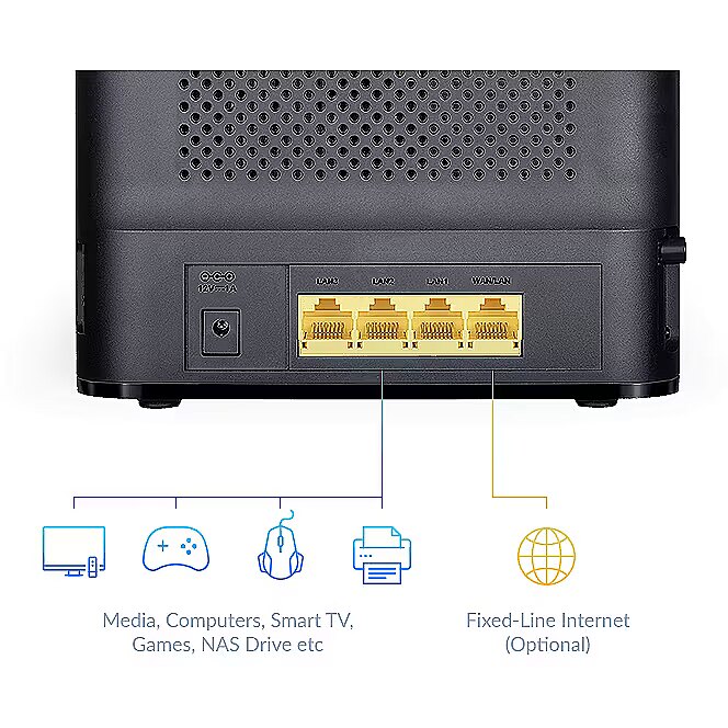 LongProductName - 1 x 10/100/1000 WAN, 3 x 10/100/1000 LAN, 1 x LTE SIM/USIM, 2.4 GHz/5 GHz, IEEE 802.11 ac/n/g/b, 275 g