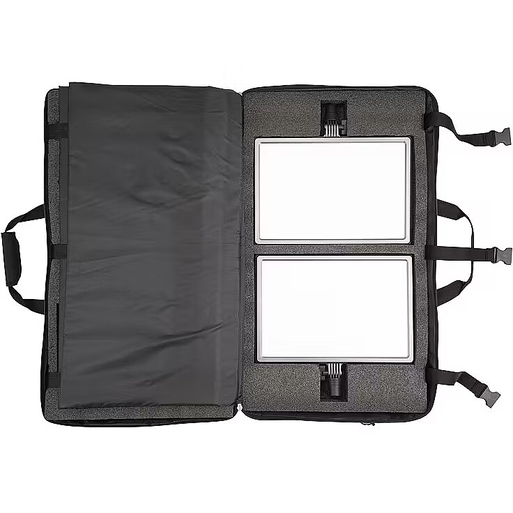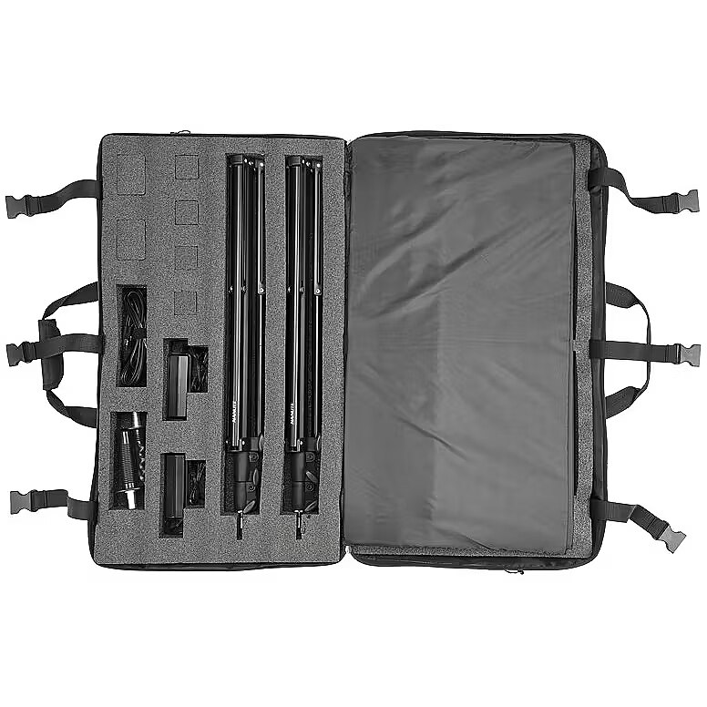 description_short_en - Pārnēsājams gaismas komplekts Lieliski piemērots portreta fotogrāfijām vai videoklipiem Divas 34,5 × 31 cm LED gaismas diodes Krāsu temperatūra: 3200-5600 K Komplektā ietilpst divi gaismas statīvi