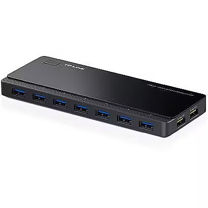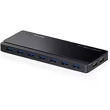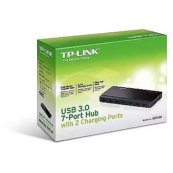 Description - TP-LINK UH720 USB 3.0 7-Port Hub with 2 Charging Ports UH720 + USB 3.0 ports offer transfer speeds of up to 5Gbps, 10 times faster than standard USB 2.0 + The 7 data transfer ports mean you don't have to switch between devices + Two exclusive 5V/2.4A charging ports intelligently recognize and optimally charge attached iOS and Android devices Increase the Number of Available Ports The UH720 is perfect for anyone who has a computer with only one or two USB ports, and wants easier access to additional ports without having to switch between devices. 10x Data Transfer Speed Equipped with USB 3.0 ports, the UH720 can transfer a 1080p movie under 2 minutes 18 seconds, whereas it takes 7 minutes 36 seconds with a USB Hub equipped with USB 2.0 ports. The actual transmission speed depends on the setting of the device connected. Extra 2 Charging Ports for All Your Devices Extra 2 USB ports supporting 2.4A outputs are specifically designed for ultra fast charging. It charges most USB-charged devices, no matter devices with large battery like tablet and smartphone, or gadgets with tiny battery like smart wearable devices, at full speed. Exclusive TP-Link Smart Charging Technology Invented to Charge Fast TP-Link Smart Charging technology intelligently identifies the connected devices and automatically delivers the fastest possible charge to your smartphones, tablets or other USB-charged devices to minimize the charging time. Protect Both Your Devices and Precious Data UH720 has a sophisticated circuit design with multiple protections for your devices against over-heating, over-current, over-voltage and short circuit. A built-in surge protector keeps both your devices and data safe in the process of transferring data. UH720 support USB ports hot swapping that can be safely connected and disconnected while the computer is powered on and running. Considerate Design A dim white LED indicator on the power button helps visulaize the connection status and similarly 7 dim white LED indicators beyond each USB port also indicate whether the devices are properly connected.