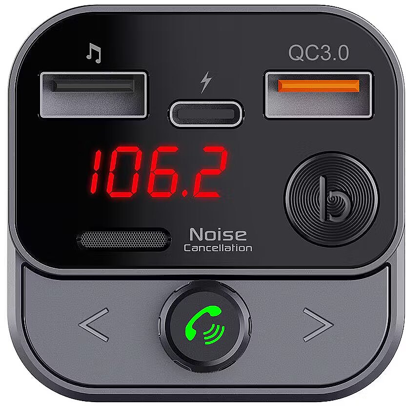 The FM transmitter also serves as a car charger. The USB-C output can be charged at 12W, while the USB-A output is equipped with Qualcomm 3.0 18W fast charging technology.