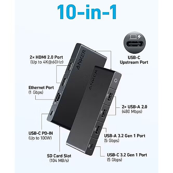 This product Anker 364 USB-C Dual Display 10-in-1 2x4K HDMI Eth black Hub