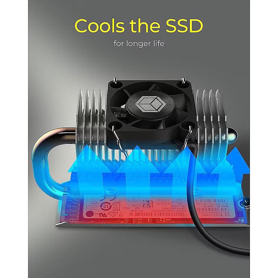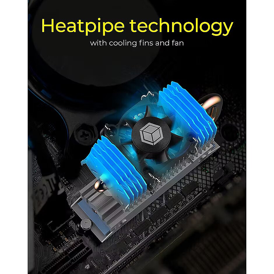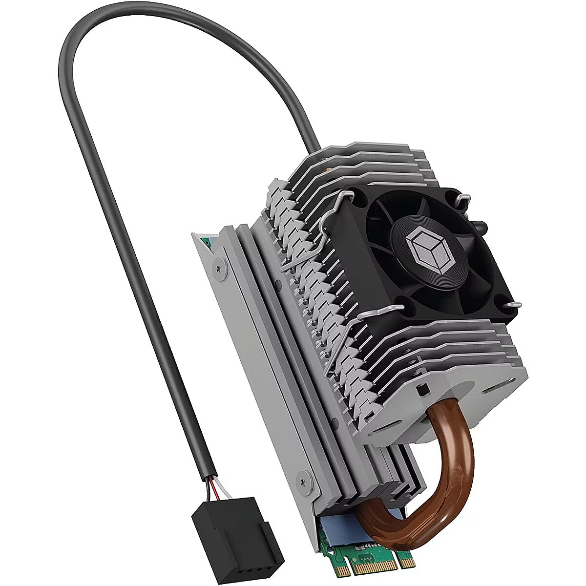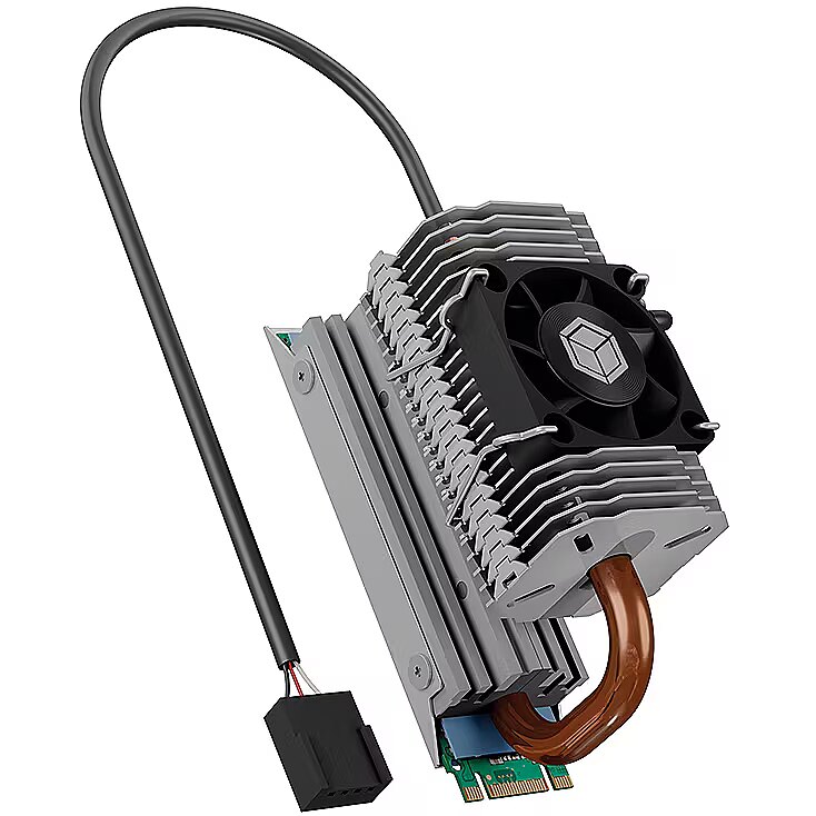 LongDesc - Powerful cooling performanceThe swivelling ICY BOX® heatpipe cooler reduces the temperature of your M.2 SSD (form factor 2280) by up to 40%. Due to the excellent interaction of cooling fins and fan, a cooling capacity of 23 W TDP is achieved. Depending on SSD manufacturer, model and version, as well as load of the SSD.Perfectly positionedThe possibility to swivel the ICY BOX® heatpipe cooler allows the airflow in the enclosure to be optimally directed. It can also be positioned flexibly, which creates additional space for graphics cards or PCIe expansion cards. This allows you to fit even more performance into small enclosures.Silent fanThe 30 mm PVM fan has an output of 8500 rpm and a volume flow of approx. 4.9 m³/h. You can further optimise the fan settings for yourself via the BIOS. This makes it possible to achieve cooling that is perfectly matched to the system. The fan is pleasantly quiet even under high demands.