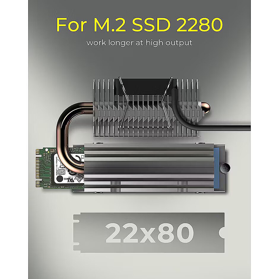 LongProductName - Heat pipe heat sink for M.2 SSD with 30 mm fan and swivelling heatpipe