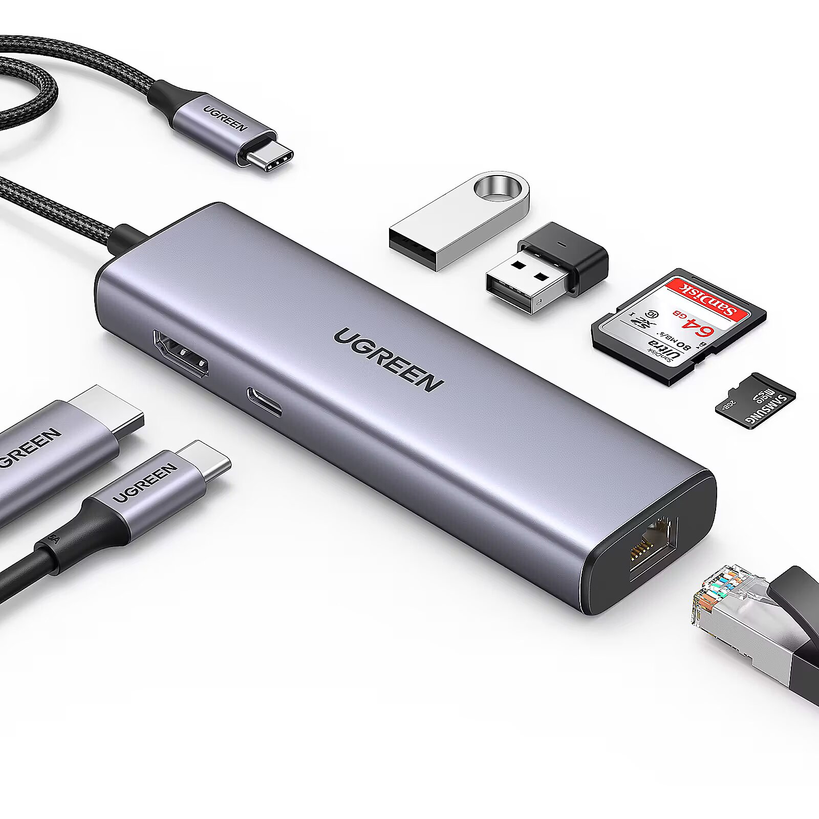 Title - Ugreen USB-C to 2*USB3.0+HDMI+RJ 45+SD&TF+PD port Hub