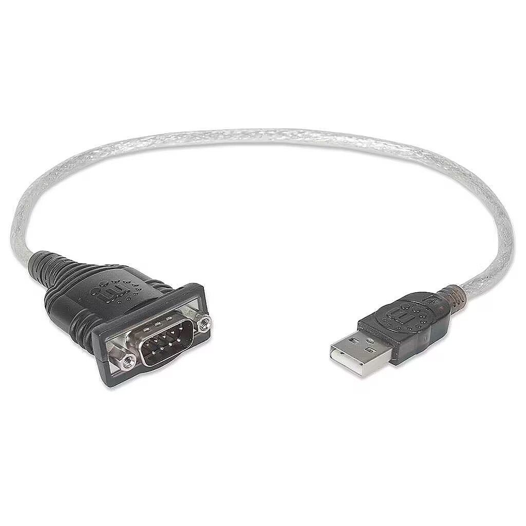 Title - Manhattan USB-A to Serial Converter cable, 45cm, Male to Male, Serial/RS232/COM/DB9, Prolific PL-2303RA Chip, Black/Silver cable, Three Year Warranty, Equivalent to ICUSB232V2