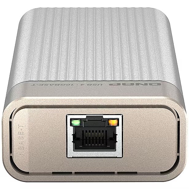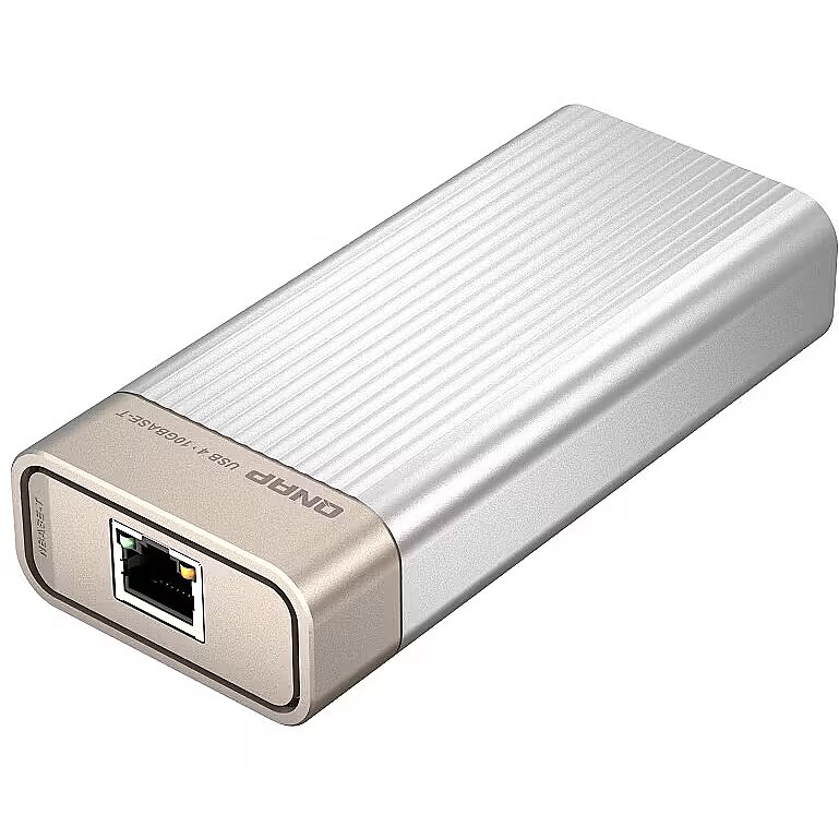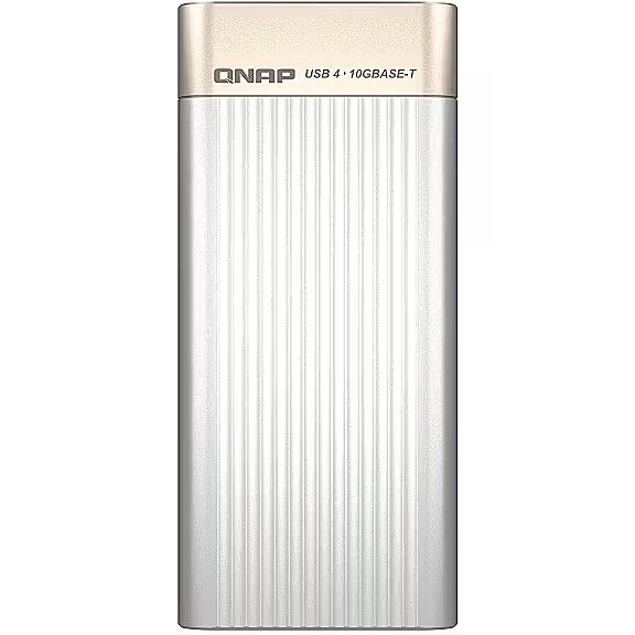 LongDesc - Enjoy stable 10GbE high-speed networking using a USB Type-C connection to greatly enhance work efficiency, even on computers without built-in network ports.Broad interface compatibilityThe QNA-UC10G1T includes a 1-meter USB 4 cable for connecting to your computer's USB 4 or Thunderbolt™ 3/4 ports.Multi-system compatibilitySupports Windows®, macOS®, and Linux® computers (driver installation required).Multi-speed supportCompatible with various network environments through Multi-Gigabit support for 10/5/2.5/1 GbE.Low-noise operationFanless design ensures stable performance with reduced noise and maintenance, offering a quiet, reliable experience for long-term use.Add 10GbE high-speed network connectivityConnect your devices to a 10GbE network with the QNA-UC10G1T and significantly boost your transmission performance and team productivity.Stylish metal finish and portablePerfectly fits in with all your tech gearBuild a high-speed network environment with a 10GbE switchIn multi-user, multi-device environments, connect your computer to a QNAP 10GbE switch using the QNA-UC10G1T network adapter to create a high-bandwidth, high-speed collaborative network across multiple connected devices.Easy setup, instant connectionSimply connect a QNA-UC10G1T to your Mac® or Windows® computer using the included USB 4 cable, and connect the adapter to a 10GbE switch, NAS, or other 10GbE device using an RJ45 Cat 5e, Cat 6, Cat 6a (or above) cable, or an SFP+ DAC cable.