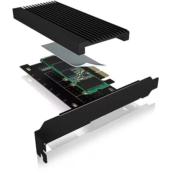 LongSummaryDescription - ICY BOX IB-PCI208-HS. Host interface: PCIe, Output interface: M.2, Expansion card form factor: Full-height / Low-profile. Product colour: Black, Cooling type: Passive, Country of origin: China. Data transfer rate (max): 64 Gbit/s. Width: 155 mm, Depth: 128 mm, Height: 20 mm. Quantity per pack: 1 pc(s), Package width: 155 mm, Package depth: 27 mm