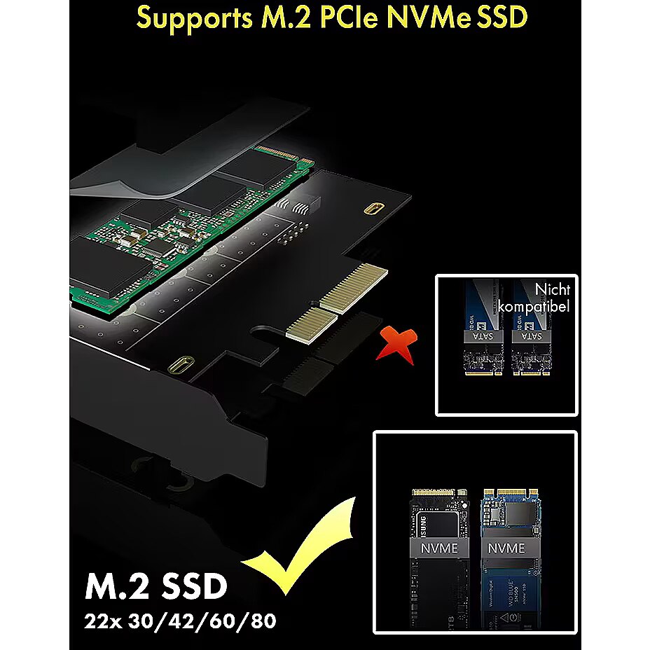 LongDesc - Ignite the data turboIf you want to give your M.2 SSD the turbo boost, then connect it with the super-fast PCIe 4.0 expansioncard! This allows the data to reach transfer speeds of up to 64 Gbit/s - waiting was yesterday!Always stays coolEven with the highest demands, your SSD always stays cool. The large, solid aluminium heat sink in the innovative cooling fin design ensures sufficient heat dissipation to keep your SSD running stably and efficiently. In addition, the expansion card comes with thermal pads that are applied to the M.2 SSD.Quite adaptableThe perfect carrier for your M.2 SSD is called IB-PCI208-HS. In the variants with full or half profile bracket, it integrates perfectly into a free slot of your PC. The inserted M.2 NVMe is to be connected via an M-Key socket.