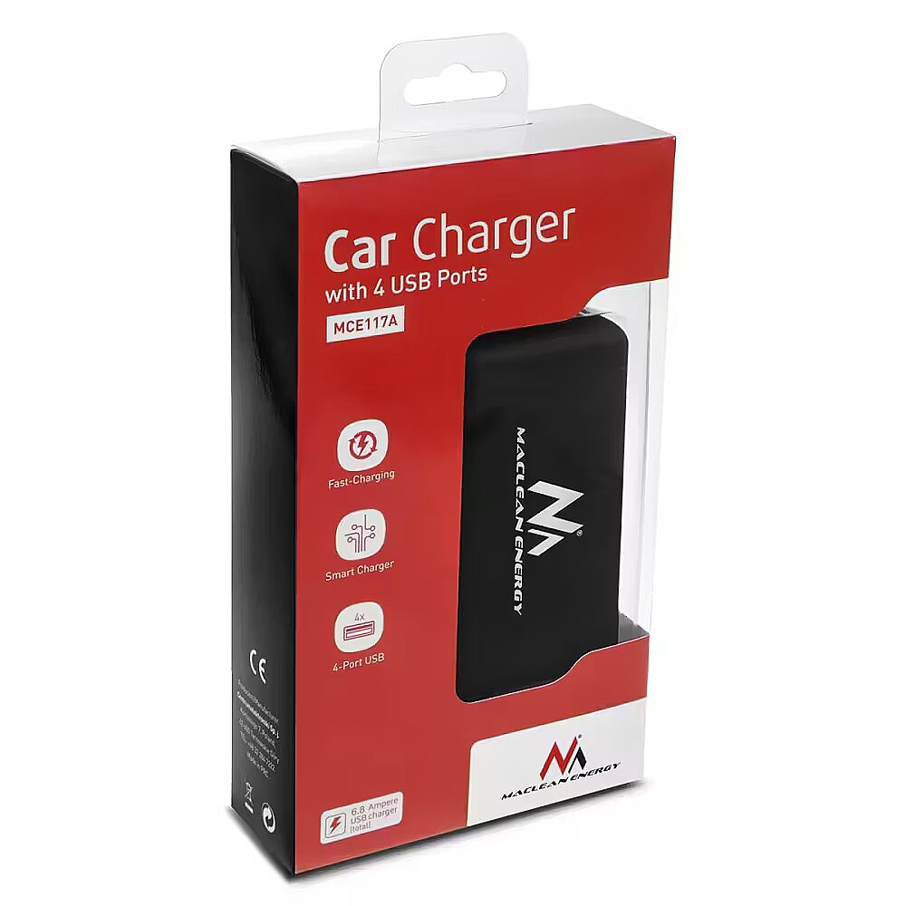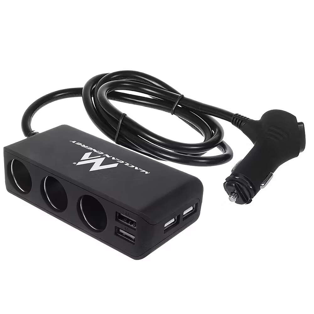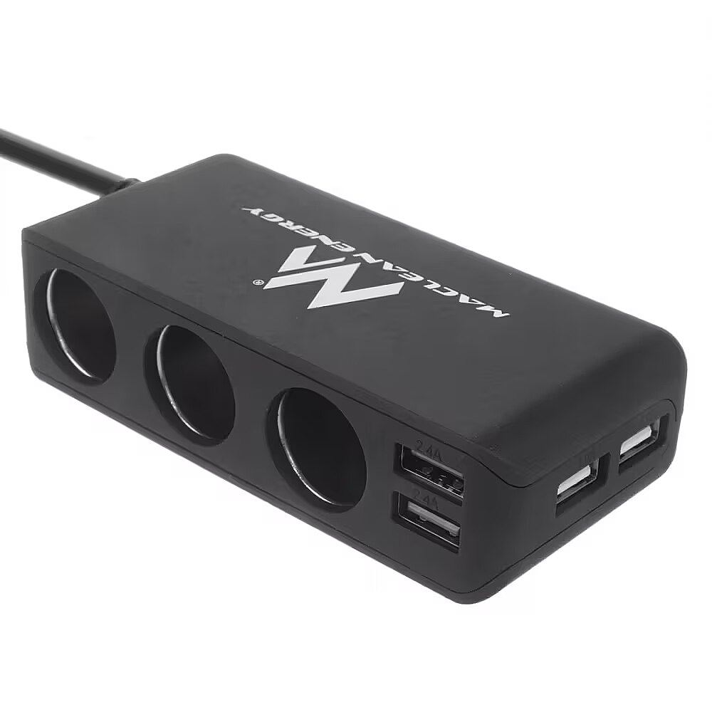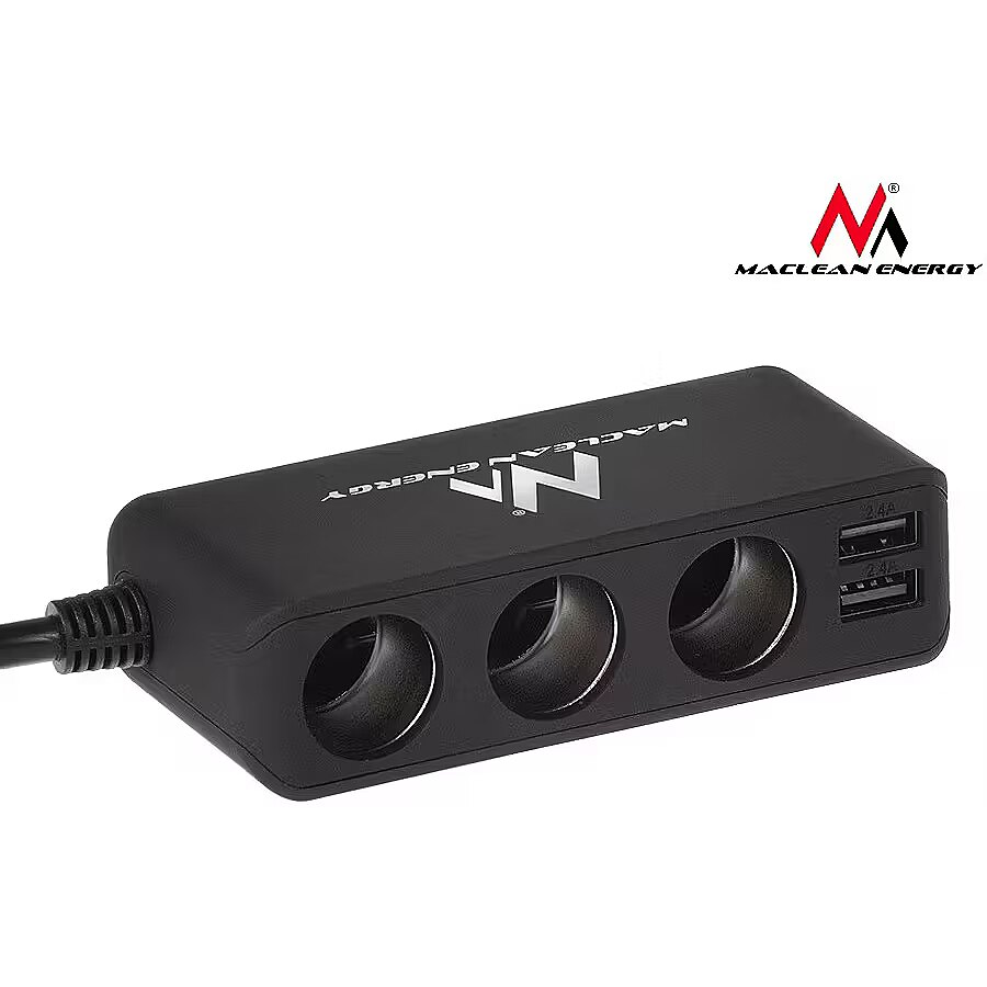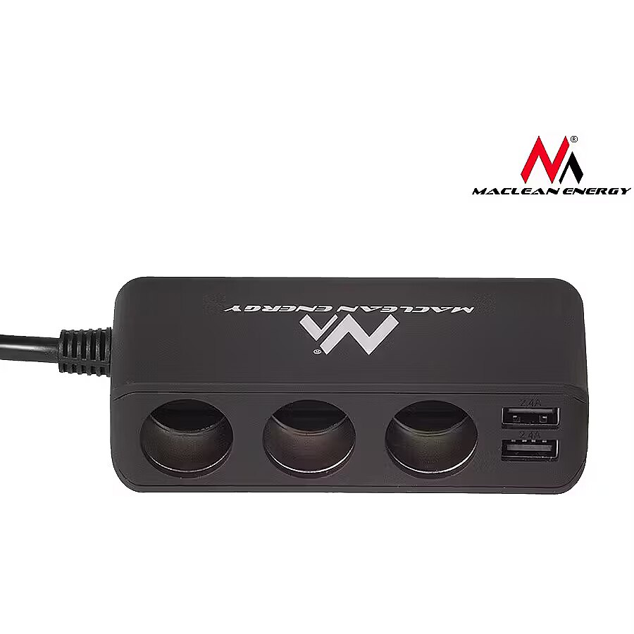 Description - Maclean MCE117 Charger Car Adapter Triple 3 Car Cigarette Lighter Plugs 2xUSB Car Charger with USB 2 -port and 3 - car cigarette lighter sockets . Smart IC auto- detection voltage. Charge 2 USB devices at the same time.  fast, efficient charging with 4.8 A. Power On / Off with LED indicator.  Cable car load of 1 m . Rubber grip for a steady load .  Surface finish with stain resistant treatment. Protection against excess voltage and current .  2x adhesive double sided 3M sticker for fixation.