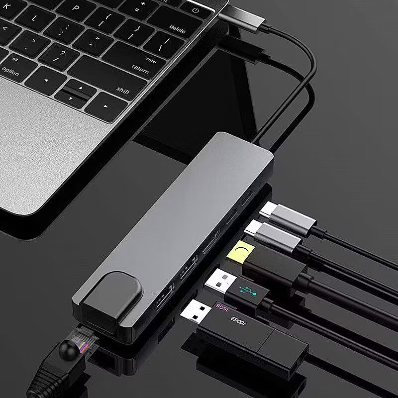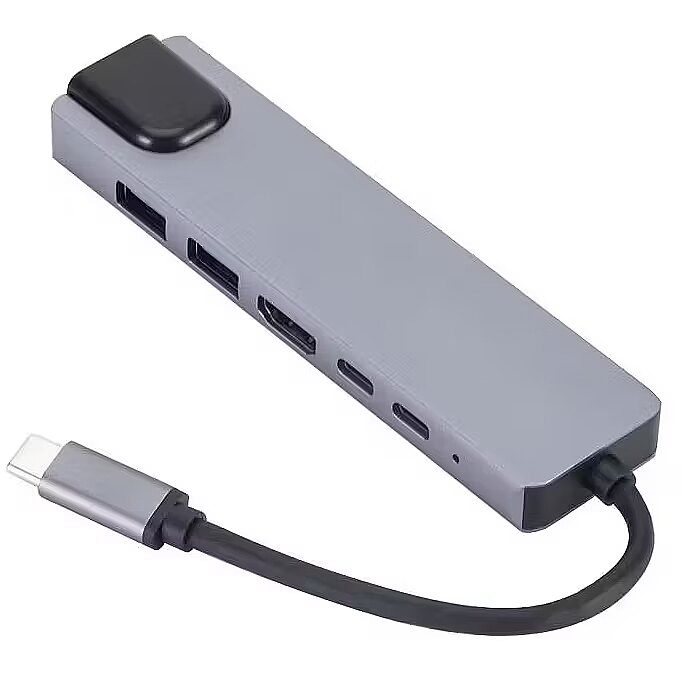 Description - Multiport USB Type-C 5-in-1 Adapter + PD A-CM-COMBO5-06 6-in-1 multi-adapter in a stylish aluminum case Supports HDMI 4K 30Hz Built-in LAN port Supports 55W PD