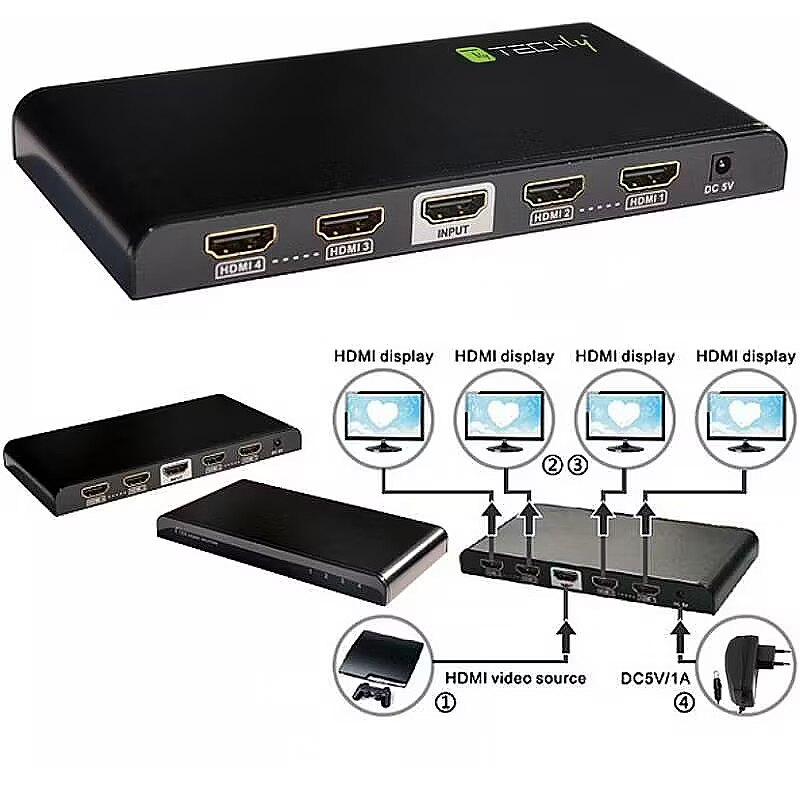 Title - Techly Splitter HDMI 2.0 4K UHD 3D 4-way