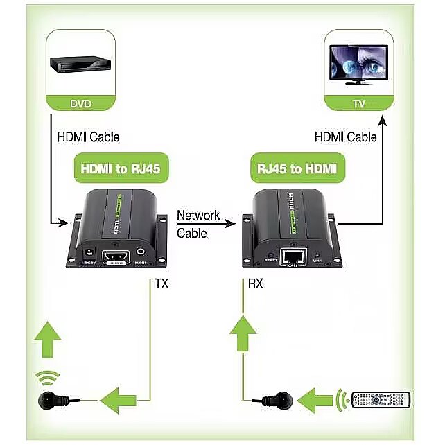 name - HDMI Extender on Cat.5e/6/6a/7 twisted pair cable, with IR receiver, black