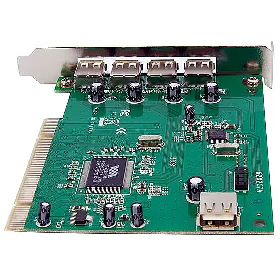 LongSummaryDescription - StarTech.com 7 Port PCI USB Card Adapter. Host interface: PCI/PCI-X, Output interface: USB 2.0, Expansion card standard: PCI 2.2. Product colour: Green, Certification: CE, FCC, TAA, REACH. Chipset: VIA/VLI - VT6212. Windows operating systems supported: Windows 10, Windows 10 Education, Windows 10 Education x64, Windows 10 Enterprise, Windows 10..., Mac operating systems supported: Mac OS X 10.10 Yosemite, Mac OS X 10.6 Snow Leopard, Mac OS X 10.7 Lion, Mac OS X 10.8 Mountain..., Server operating systems supported: Windows Server 2003, Windows Server 2008 R2, Windows Server 2012, Windows Server 2016, Windows.... Width: 120 mm, Depth: 122 mm, Height: 20 mm