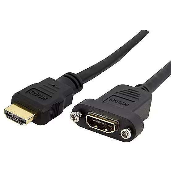 ShortSummaryDescription - StarTech.com 3ft HDMI Female to Male Adapter, 4K High Speed Panel Mount HDMI Cable, 4K 30Hz UHD HDMI, 10.2 Gbps Bandwdith, 4K HDMI Female to HDMI Male, HDMI Panel Mount Connector Cable, 0.9 m, HDMI Type A (Standard), HDMI Type A (Standard), 3D, 10.2 Gbit/s, Black