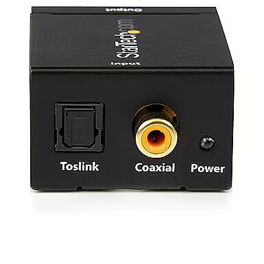 LongDesc - Convert a Digital Coax or Toslink Signal to Stereo RCA AudioThe SPDIF2AA Toslink/Optical SPDIF to RCA Audio Converter lets you convert a 2-channel Digital Coaxial or Toslink/Optical SPDIF input signal into an RCA analog stereo output.Perfect for home and professional audio applications, this SPDIF to RCA audio converter saves the cost of upgrading equipment for compatible connections, and offers separate Digital Coax and Toslink inputs for dual-function conversion. The small form factor design makes it suitable for installation into virtually any location, regardless of space constraints, while still providing a lossless audio signal. Plus, the digital coaxial or Toslink to RCA converter supports plug-and-play installation, saving you time and hassle.Backed by a StarTech.com 2-year warranty and free lifetime technical support.The StarTech.com Advantage- Support for Digital Coax or Toslink to RCA conversion offers versatility and saves the cost of hardware upgrades that would otherwise be needed for compatiblity- Compact form-factor makes the device easy to transport and fit into almost any installation space
