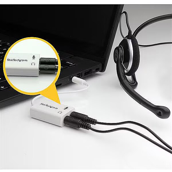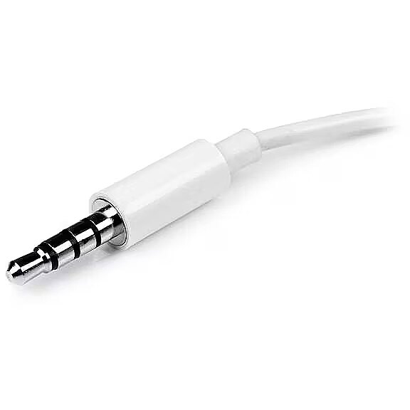LongDesc - Have you recently purchased a newer laptop or Ultrabook and now you can’t figure out where to plug in your favorite headset?Most new laptops and Ultrabooks come equipped with a single 3.5mm 4-position (4pin) audio port that supports both audio input and output. A great number of headsets on the market come equipped with two separate headphone and microphone connectors that are not compatible with this new configuration.The MUYHSMFFADW white headset adapter features two 3.5mm 3-position ports that provide a separate headphone and microphone connection that can be connected to the single audio port on your laptop. Alternatively, you can also connect a separate microphone and powered speakers if you prefer to use Skype or chat online without using a headset.Headset Connectivity Simply connect the headphone plug from your headset into the audio output port marked with the headphone symbol, and connect the microphone plug into the audio input port marked with the microphone symbol. Plug the adapter into the audio port on your laptop and you’re all set. Microphone and Powered Speaker ConnectivityWant to work or game without using a headset?You can also connect a microphone and powered speakers to your laptop using the adapter. Just plug in your microphone into the audio input port marked with the microphone symbol, and plug your powered speakers into the audio output port marked with the headphone symbol, and connect the adapter to the audio port on your laptop.Keep in touch while you travelAre you travelling for work or taking a trip?The headset adapter features a compact and sturdy design that makes it the perfect solution for mobile applications.Tuck the adapter in with your tablet or slip it inside another carrying case. It works great with tablets and smartphones that have a single audio port. Just connect the headphone and microphone plugs from your headset into the adapter, connect the adapter to your mobile device and start talking.This high quality 3.5mm headset adapter is backed by StarTech.com's lifetime warranty.Please note:This adapter is not a headphone splitter or Y-cable. It cannot be used to split the audio output to two separate sets of headphones or speakers.Some laptops and mobile devices will not work with all external microphones. This is typically caused by an impedance mismatch between the microphone and the device. This is due to hardware incompatibility and is not a limitation of the MUYHSMFFADW adapter.The StarTech.com Advantage- Turns a 3.5mm combo headphone/microphone port into two distinct ports – one 3.5mm headphone jack and one 3.5mm microphone port- Allows the use of older audio accessories with newer computers