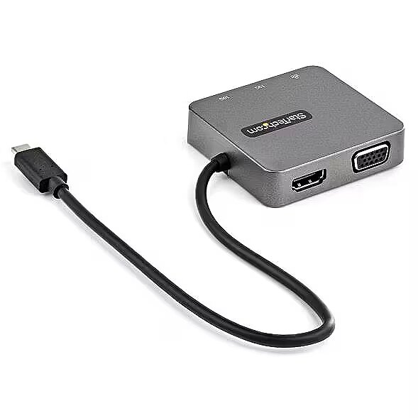 LongDesc - USB-C Travel Dock | MacBook Pro | USB-C & A Ports | Mac, Windows, Chrome & Android OSThis USB-C multiport adapter turns your USB-C ® or Thunderbolt™ 3 MacBook Pro, Windows laptop, Chromebook and Android tablet into a workstation, anywhere you go. A USB 3.1 Gen 2 Type-C hub adapter, ideal for travel, features everything from the essential HDMI or VGA video outputs to faster 10G USB-C & USB-A peripheral ports. All through a single extended length 29cm USB-C® attached host cable, providing more flexibility for harder to reach laptop and tablet connections.Two Video Output Options with HDMI & VGAThis USB-C multiport adapter features both an 4K 30Hz HDMI and VGA port providing you with two single video output options for your boardroom presentations or your workstation setup including support for an ultra-wide monitor.Designed for Portability & Ease of UseThe USB-C travel dock is bus-powered through an attached extended length 29cm host cable, accommodating a wide variety of setups, so there’s no need to carry around a separate bulky power adapter. Installation is fast and simple, with native support in most operating systems and at only 1.94 ounces (55 g) and taking up less space than your smartphone, this dock easily fits in your laptop bag or briefcase.Simplistic Port ConfigurationIn addition to the video outputs, the portable USB-C dock gives you one 10G USB-C port and USB-A port to connect your latest and legacy USB devices. The adapter also integrates a Gigabit Ethernet port to access a wired network.Enhance Productivity and Device Management with the StarTech.com Connectivity Tools ApplicationDeveloped to improve performance and security, StarTech.com Connectivity Tools is the only software suite on the market that works with a wide range of IT connectivity accessories. The software suite includes:•Advanced Windows Layout Utility : To setup and save custom windows layouts.•Mac Address Pass-Through Utility : To improve network security.•USB Event Monitoring Utility : To track and log connected USB devices•Wi-Fi Auto Switch Utility : Enabling users to quickly access faster network speeds via wired LAN.For more information and to download the StarTech.com Connectivity Tools application, please visit: www.StarTech.com/Connectivity-ToolsThe DKT31CHVL is backed by a StarTech.com 3-year warranty and free lifetime technical support.The StarTech.com Advantage