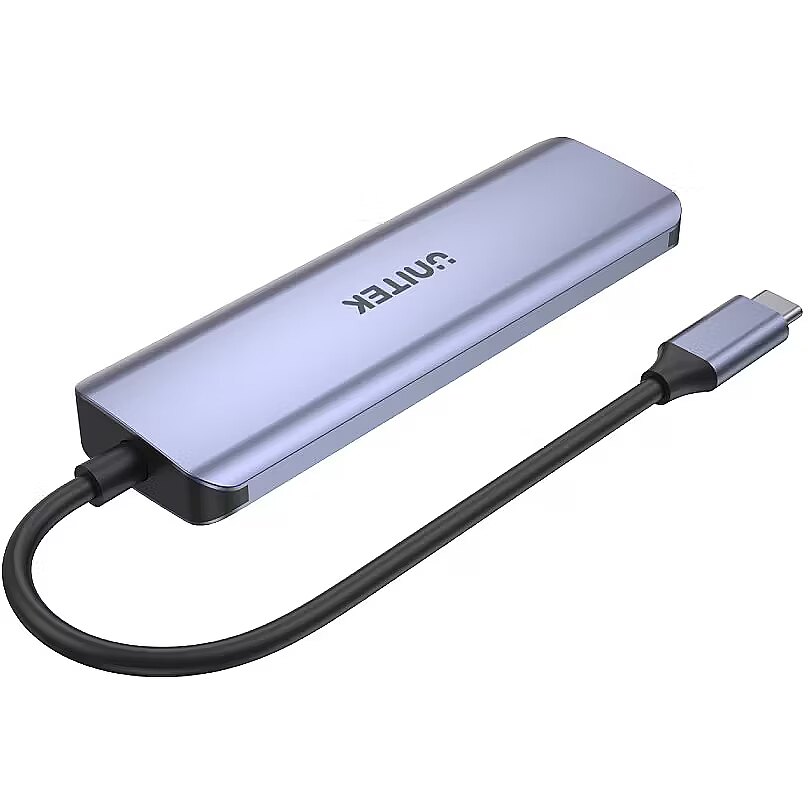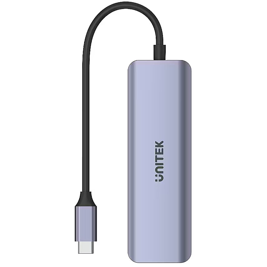 Description - Four in one Hub 4in1 is a useful addition to modern ultrabooks, where the number of ports is insufficient for our needs. Thanks to it, you can connect up to four additional devices such as a smartphone or a graphic tablet. There are as many as four USB-C ports at your disposal. Fast as lightning The built-in ports operate according to the USB 3.2 Gen1 specification, which means that file transfers with speeds of up to 5Gbps will be faster than making a cup of tea. The hub is also backward compatible with USB 2.0/1.1 and the connection to the device is indicated by an LED indicator. The device is fully Plug&Play, which means that you do not need to install drivers - just plug it in and it works. Elegance and durability Despite as many as four available ports, the hub is also designed with aesthetics in mind. Made of high-quality aluminum, it will dissipate heat well, and the slim shapes and fashionable "Space Gray" color will make the hub visually match modern electronics. Quality guaranteed All Unitek brand products in Poland may be covered by a three-year warranty of the distributor. To activate it, register the purchase via the Unitek Search app (available for iOS and Android).