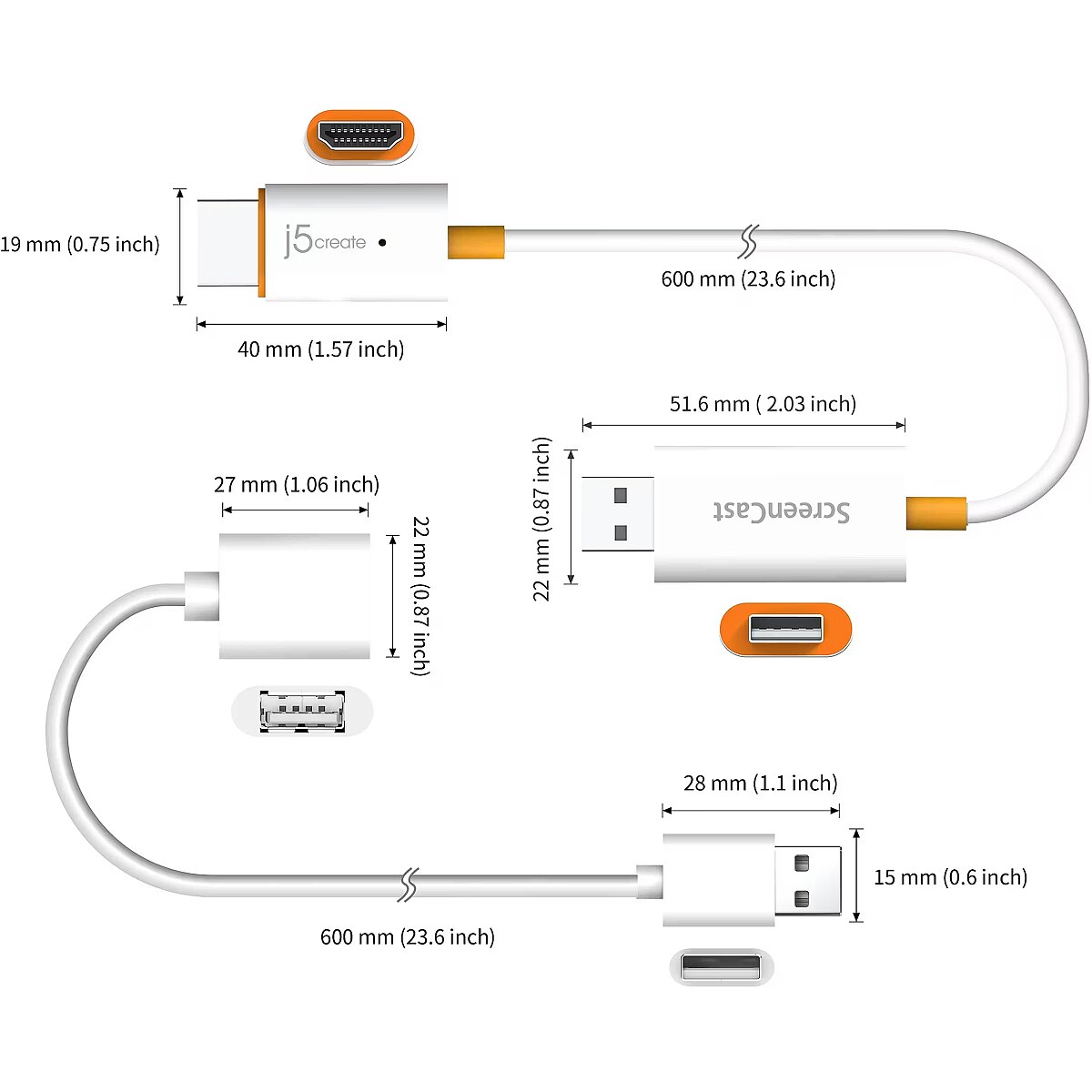 LongSummaryDescription - j5create ScreenCast HDMI Wireless Display Adapter Receiver - Mirrors Phone, Tablet, Laptop to HDTV - Compatible with MiraCast, AirPlay, Android, Windows 10 PC, iOS, iPhone, Tablet (JVAW56). USB connector type: USB Type-A, Supported video modes: 480p, 720p, 1080p. Windows operating systems supported: Windows 10, Windows 8.1, Mac operating systems supported: Mac OS X 10.15 Catalina, Mac OS X 11.0 Big Sur, Mac OS X 12.0 Monterey. Products per shipping (inner) case: 5 pc(s), Shipping (inner) case length: 15 cm, Shipping (inner) case width: 10.5 cm. Package width: 145 mm, Package depth: 95 mm, Package height: 25 mm