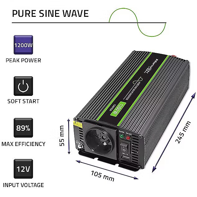 Name - Qoltec Przetwornica napięcia Monolith | 600W | 1200W | 12V na 230V | Czysty Sinus