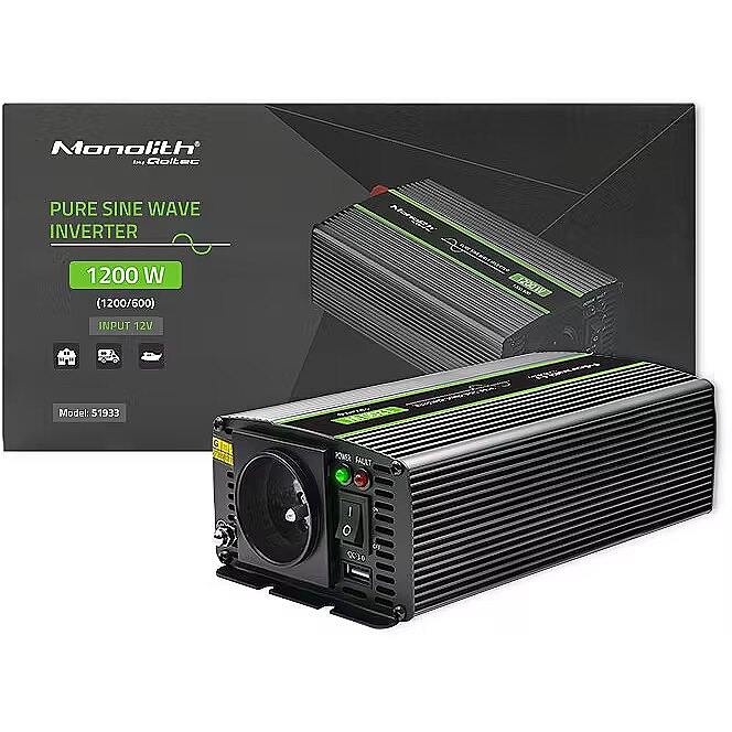 productName - Qoltec Monolith power adapter/inverter Auto 1200 W Black