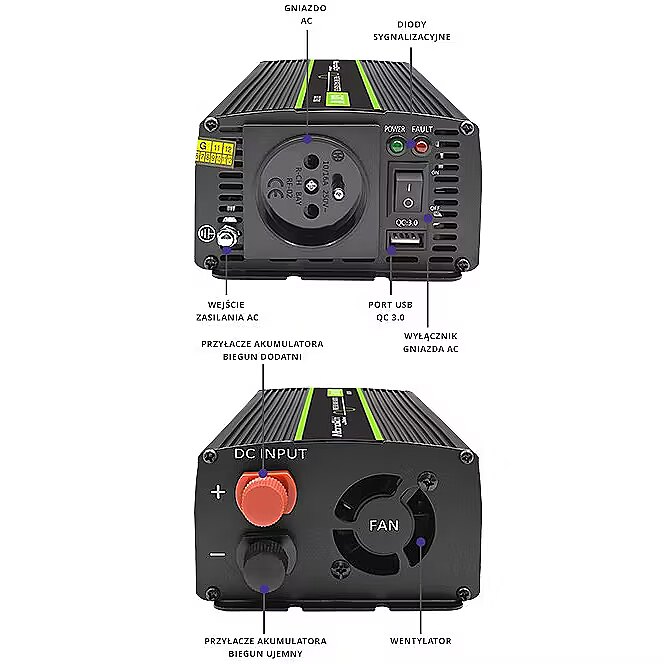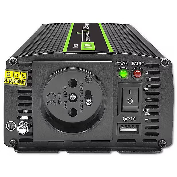 Qoltec brand inverter is a pure sine wave, produces the same current as a 230V socket, ensuring safety for all connected devices. Great for both during power outages, as well as during travel when we do not have access to an outlet. When choosing a suitable inverter, it is worth paying attention to the power value and voltage of the battery, which must be consistent with that indicated on the inverter to ensure that our equipment has the right conditions for work. Also important is the number of connected devices, for example, connecting a laptop and a printer, the power of both devices should be added up. Remember that the power consumed by the connected device should not exceed 85% of the rated power of the inverter.