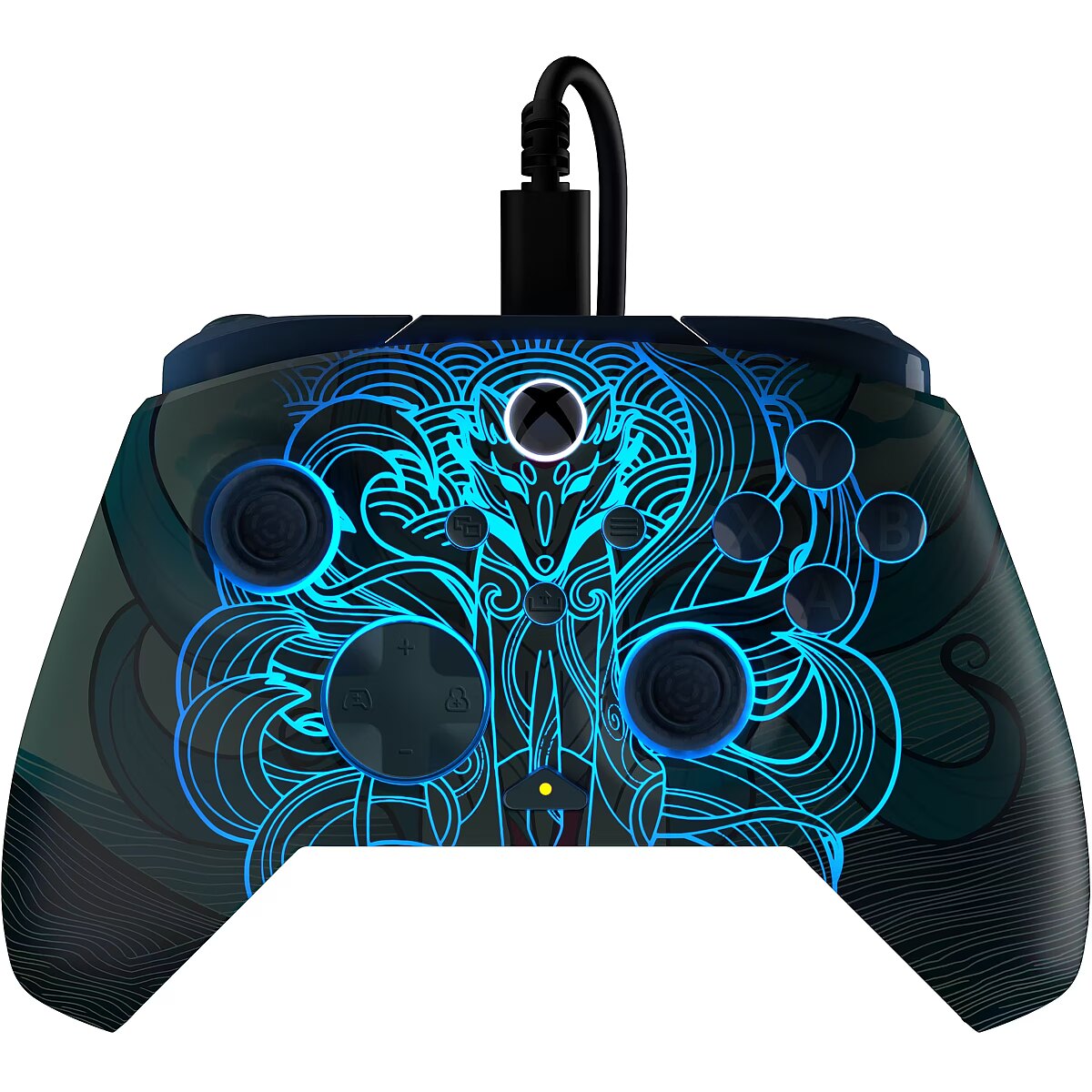 LongDesc - Ready for a rematch? Take your gaming setup to the next level with the Rematch Advanced Wired Gaming Controller for Xbox and PC. The Blue Kitsune controller is inspired by the legendary fox of Japanese Folklore, known for its intelligence, speed, and shape-shifting power. This design features stunning fox imagery in soft blue tones, creating a sense of movement and energy that flows across the surface. It brings a calm yet powerful aesthetic to your setup and turns your controller into a striking expression of style and character. Bringing its bold design to life with a powered glow, this controller lights up instantly when connected to your Xbox or PC. The vibrant blue lighting adds atmosphere to your space, illuminates the design, and keeps the magic alive through late-night sessions.Beyond its sleek design, Rematch Advanced is packed with features that redefine how you play your games. True Hall effect hair triggers with a 2-stop function enhances precision and reaction time, allowing you to fine-tune every movement for maximum control. Equipped with mappable quick-action back buttons, this controller lets you create custom commands, giving you an edge over competition with lightning-fast response times and improved efficiency in high-pressure moments. Immerse yourself in every battle with dual rumble motors and impulse triggers, delivering realistic feedback that pulls you deeper into action. Stay focused on the game and seamlessly adjust your audio settings on-the-fly with patented D-pad audio controls, letting you adjust game/chat mix, master volume, and a dedicated mic mute button. The ergonomic design ensures a natural fit, allowing for extended play sessions without discomfort. Take customization to the next level with the free Control Hub app, allowing you to re-map buttons, fine-tune trigger sensitivity, adjust dead zones, and easily update firmware, creating a gaming experience tailored to your playstyle.Officially licensed by Xbox, this controller delivers the perfect combination of style, precision, and customization to take your gaming to the next level.