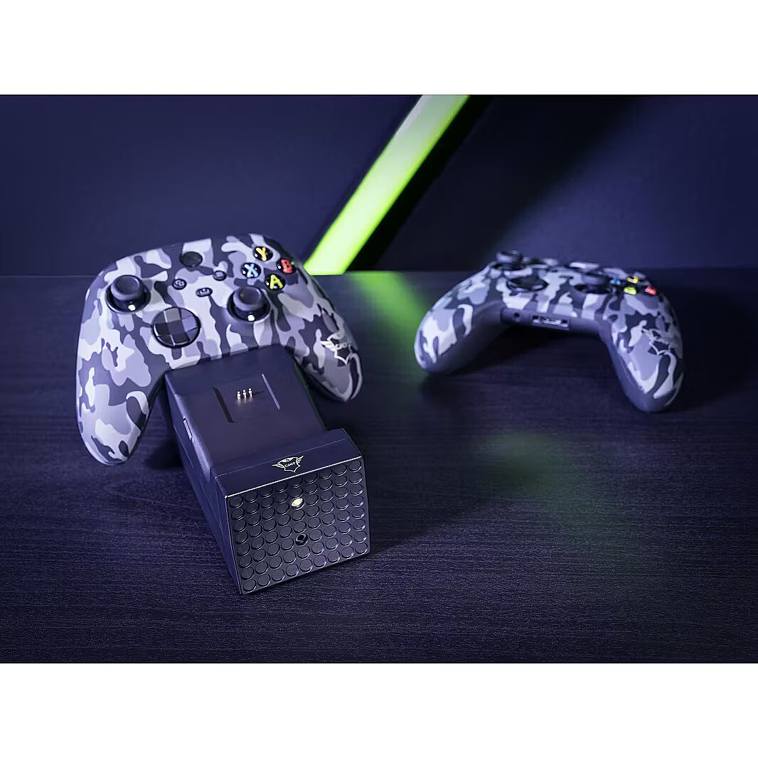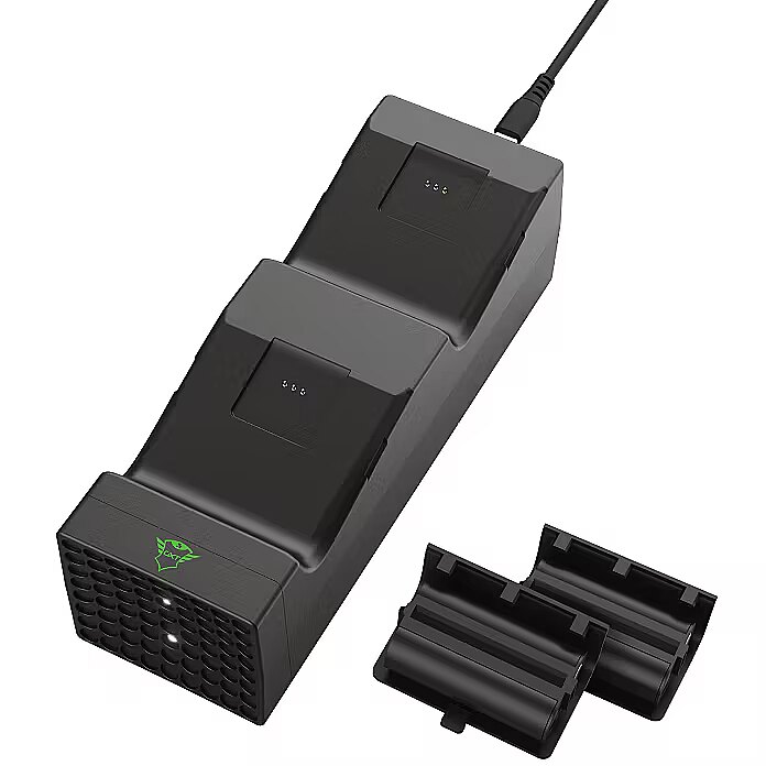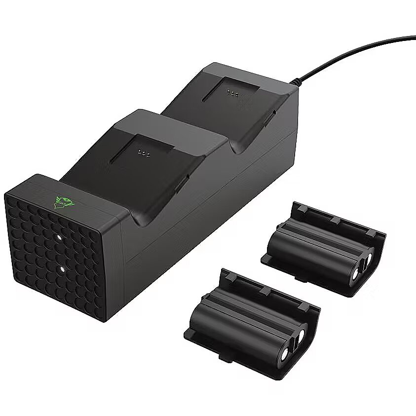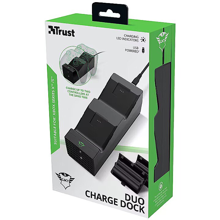 LongDesc - Take Back PowerNever worry about empty controllers again. The Trust GXT 250 Duo Charging Dock for Xbox Series X | S will always have your controllers ready and charged thanks to the included battery packs and dual-charge function.Stop Wasting BatteriesThe controller for the latest Xbox still works on disposable batteries. Well, no more. The Duo Charging Dock comes with two rechargeable battery packs, making this solution not just great for the environment, but it saves a lot of money too. And because you’ll recharge both battery packs at ones in this dock, it also saves you valuable time.It FitsThe GXT 250 Duo Charging Dock resembles the look of the Xbox Series X, making it a great companion for your new console. Use the single USB cable to connect the dock to the console and store your controllers on top to keep them in a safe spot. By keeping your console in sleep mode, your controllers will be charged and ready to go the next time you want to play a game.