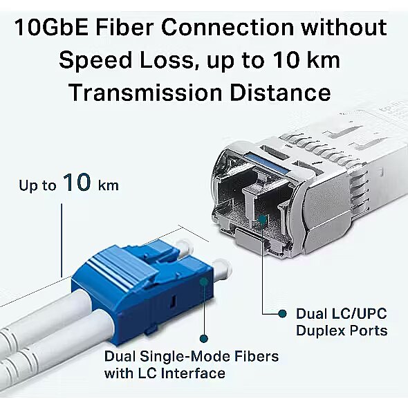 ShortSummaryDescription - TP-Link SM5110-LR, Fiber optic, 10000 Mbit/s, SFP+, LC, 9/125 µm, 10000 m