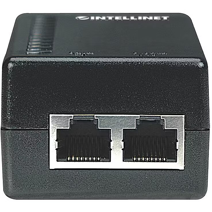 LongSummaryDescription - Intellinet Power over Ethernet (PoE) Injector, 1 Port, 48 V DC, IEEE 802.3af Compliant. Ethernet interface type: Fast Ethernet, Ethernet LAN data rates: 10,100 Mbit/s, Networking standards: IEEE 802.3, IEEE 802.3af, IEEE 802.3u. Product colour: Black, Safety: SCP, Power protection features: Over voltage, Overload, Short circuit. Power over Ethernet (PoE) voltage: 52 V, Power requirements: 15.4 W, AC adapter frequency: 50/60 Hz. Certification: FCC Class B, Part 15, CE 89/336/EEC, UKCA, NDAA. Size (imperial): 5.08 cm (2"), Width: 50 mm, Depth: 120 mm