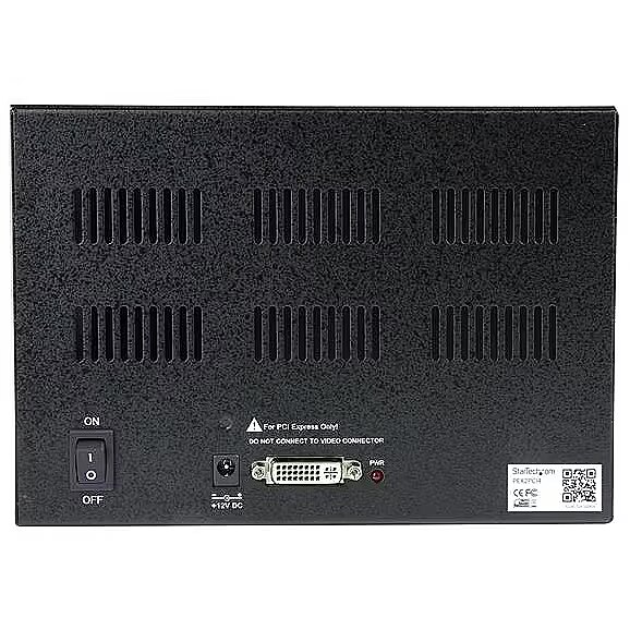 LongSummaryDescription - StarTech.com PCI Express to 4 Slot PCI Expansion System. Product colour: Black, Certification: CE, FCC, RoHS. Output voltage: 12 V, Output current: 3 A. Width: 137 mm, Depth: 204 mm, Height: 142 mm. Cables included: AC, DVI, Package width: 200 mm, Package depth: 245 mm