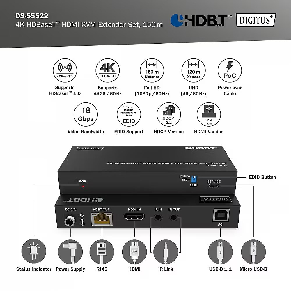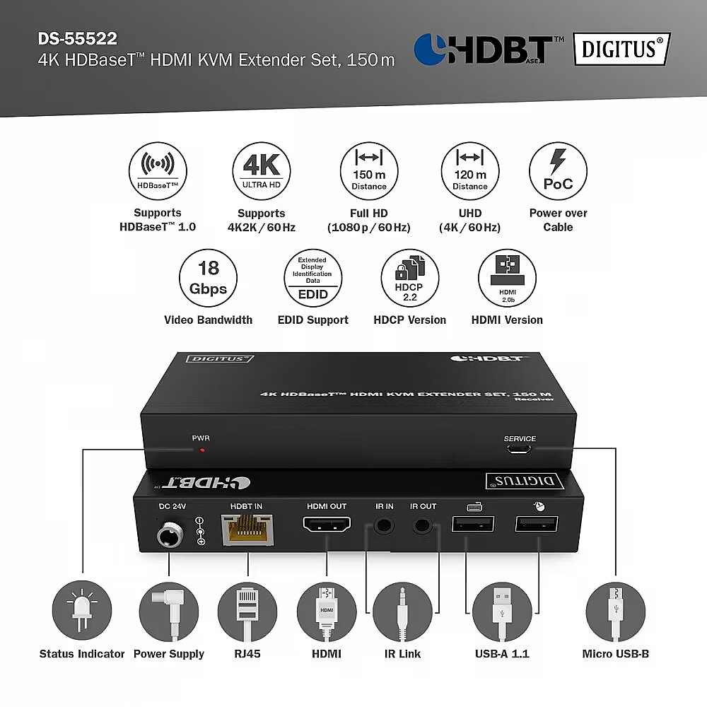 Name - DIGITUS 4K HDBaseT HDMI KVM Extender Set USB 1.1 150m