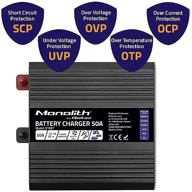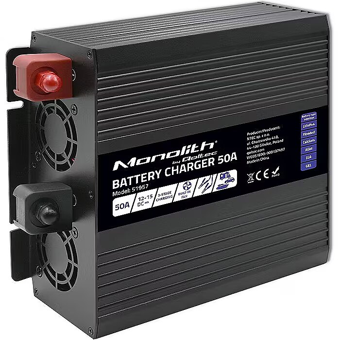 productName - Qoltec Intelligent Professional Monolith Battery Charger for LiFePO4 AGM GEL SLA batteries | 50A | 12V