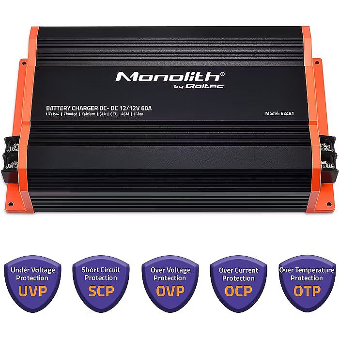 The Monolith DC-DC charger will charge your starter battery using intelligent 3-stage charging consisting of: