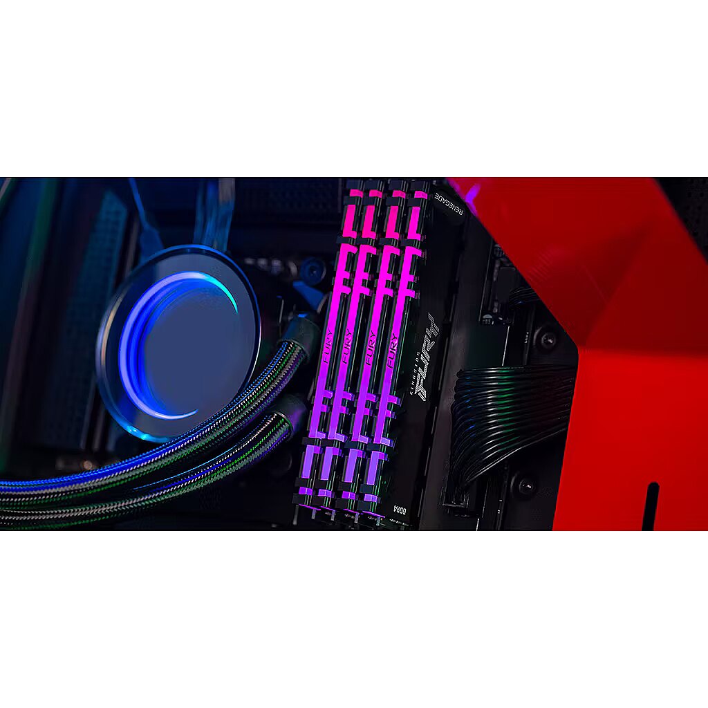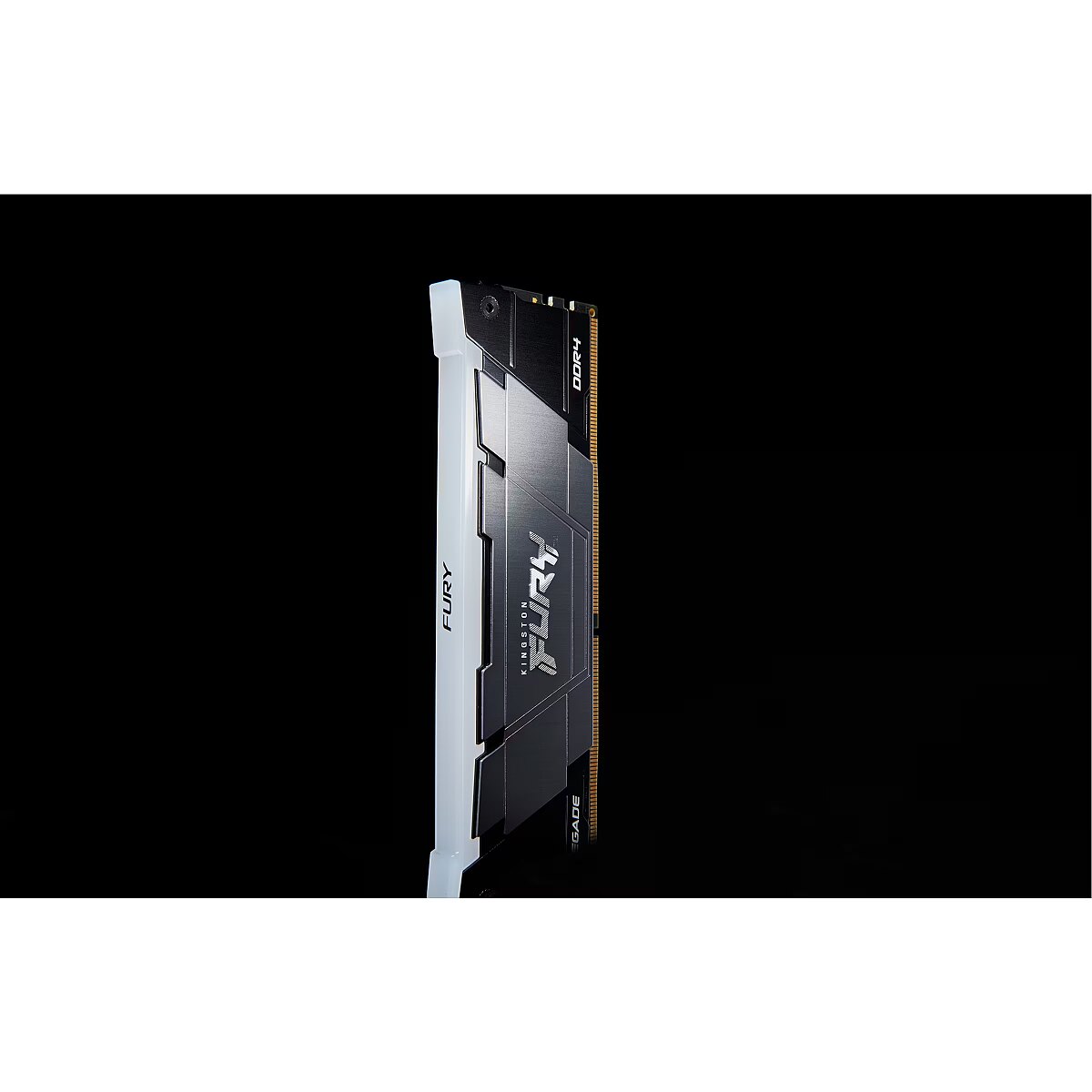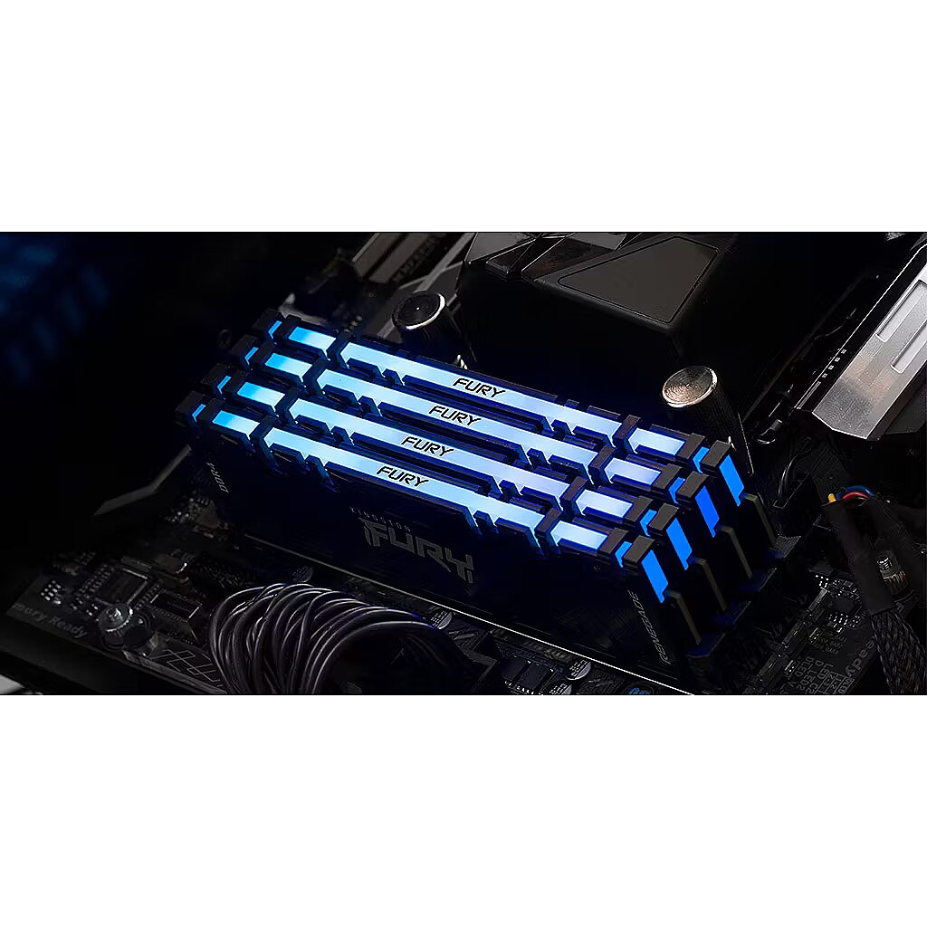 LongDesc - Kingston FURY™ Renegade DDR4 RGB* is the ideal upgrade for the power user who wants cutting-edge performance, with stylish RGB in their AMD- or Intel-based system. 10 LEDs create dynamic RGB lighting with Kingston FURY's patented Infrared Sync Technology™ for smooth, coordinated effects. Put in hours for work or play, crank up your frame rate, improve your workflow and edit gameplay in a flash thanks to speeds of up to 4600MT/s[*]* paired with quick latencies. The intense, stylish two-tone black heat spreader with black PCB is for fun and function to keep your system cool. Available in single module capacities of 8GB–32GB and kits of 2, 4 and 8 with capacities of 16GB–256GB. [Kingston FURY Renegade DDR4 RGB is Ready for AMD Ryzen, and Intel® XMP Certified] or XMP Ready.Stunning RGB styleBring your workstation to life with smooth, stunning RGB lighting effects*Patented Kingston FURY™ Infrared Sync Technology™RGB lighting stays synced thanks to Kingston FURY's Infrared Sync TechnologyPowerful aluminium heat spreader displays smooth RGB effectsThe two-tone black aluminium heat spreader and black PCB highlight the stunning RGB effects to keep your rig running and looking sharp.Intel XMP Certified or Read profilesIntel Extreme Memory Profile technology makes it possible to overclock with ease. Simply select one of the built-in, hand-tuned profiles in your BIOS to get the benefits of overclocking.Ready for AMD Ryzen™Get memory that’s Ready for Ryzen and will seamlessly integrate with your AMD-based system.