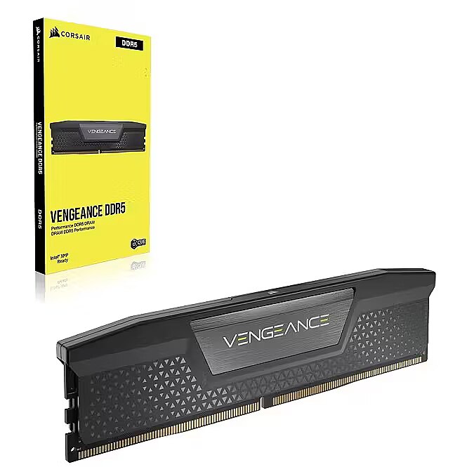 Description - Zestaw pamięci VENGEANCE 16 GB (1x16 GB) DDR5 DRAM 5200 MHz C40 czarny Pamięć CORSAIR VENGEANCE DDR5, zoptymalizowana pod kątem płyt głównych do procesorów Intel, oferuje większe częstotliwości i pojemności związane z technologią DDR5 w module o wysokiej jakości i kompaktowych rozmiarach, który pasuje do Twojego zestawu komputerowego.