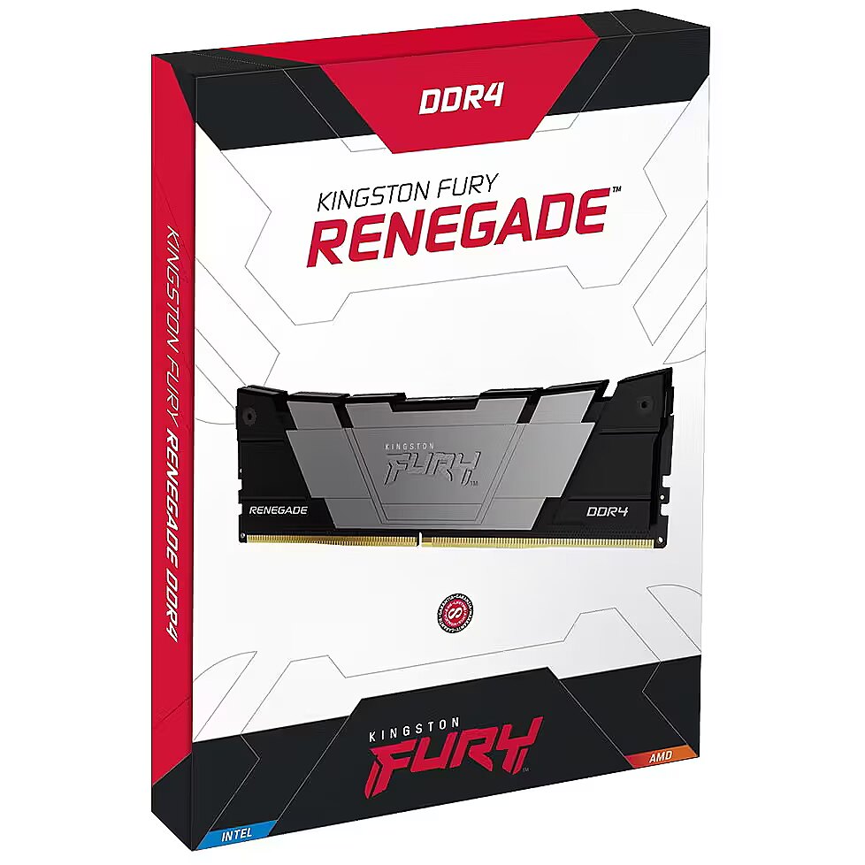 LongDesc - Enhance AMD- or Intel-based systems with ultra-fast Kingston FURY™ Renegade DDR4 memory, ensuring you maintain peak performance levels. Combine speeds of up to 5333MT/s[*]* with quick CL16-CL20 timings to increase frame rate, keep streams smooth and edit all your content in a flash. The bold, two-tone black heat spreader with black PCB not only adds a touch of style but also manages heat while tackling heavy workloads. Available in single module capacities of 8GB–32GB and kits of 2, 4 and 8 with capacities of 16GB–256GB. Kingston FURY Renegade DDR4 is Ready for AMD Ryzen, Intel® XMP Certified and XMP Ready. You’re ready to go with profiles that are optimised for AMD and Intel’s latest chipsets.High speeds plus low latencies for extreme performanceWith speeds of up to 5333MT/s* paired with quick CL16–CL20 timings to help your AMD- or Intel-based system power through games, video editing and broadcasting, [Kingston FURY Renegade DDR4] is the prime choice to meet demands.Intel® XMP Certified or ReadyIntel Extreme Memory Profile technology makes it possible to overclock with ease. Select one of the built-in, hand-tuned profiles in your BIOS to get the benefits of overclocking without having to manually adjust the memory timings yourself.Ready for AMD RyzenGet memory that’s Ready for Ryzen and will seamlessly integrate with your AMD-based system. A reliable, compatible performance boost for your build.Intense black aluminium heat spreaderThe two-tone black aluminium heat spreader and black PCB keep your rig running and looking sharp.