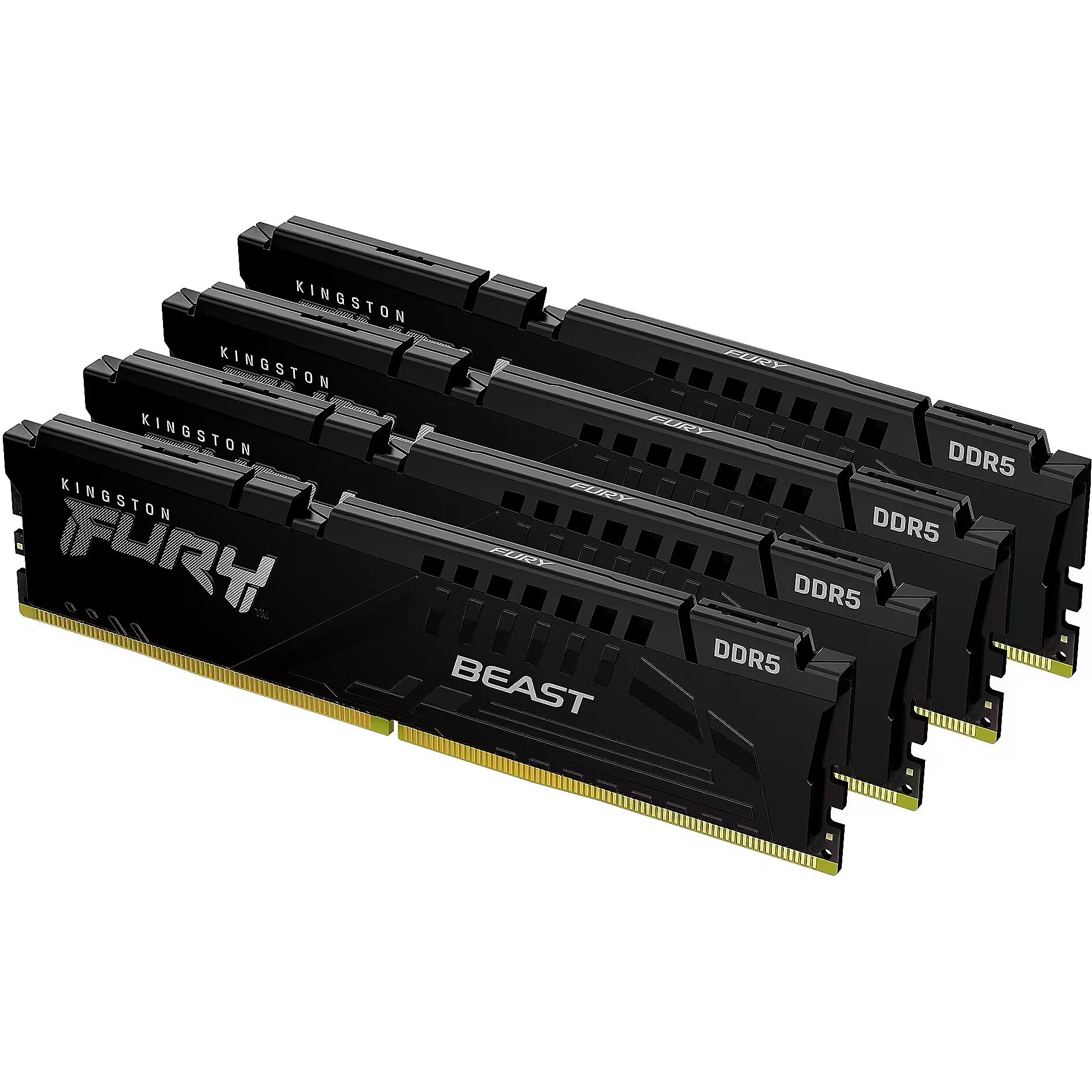 ShortSummaryDescription - Kingston Technology FURY Beast 64GB 5200MT/s DDR5 CL40 DIMM (Kit of 4) Black XMP, 64 GB, 4 x 16 GB, DDR5, 288-pin DIMM, Black