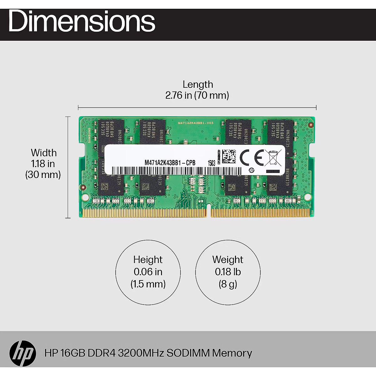 ShortSummaryDescription - HP 16GB DDR4 3200 SODIMM Memory, 16 GB, 3200 MHz, 260-pin SO-DIMM