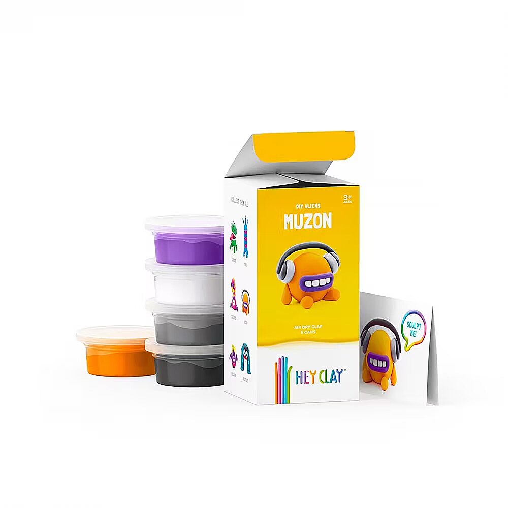 Hey Clay contains 5 containers of soft, fragrant creative mass and an access code to the app. The colors are shown on the packaging, allowing you to create the chosen figurine. Part of the mass remains for reuse, so you can realize your own creative idea. The mass dries in the air within 24 hours.