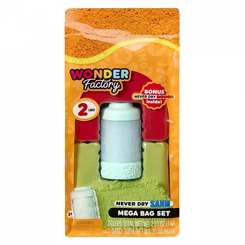Description - Wonder Factory Never Dry Sand Bag is an innovative kinetic sand set that allows children to create and shape sand structures without the risk of the sand drying out. The sand is soft, flexible, and easy to mold, providing endless fun for indoor beach play or creating their own artistic masterpieces. The set comes in a convenient orange-red bag, making it easy to store and carry the sand. Children can play alone or in groups, developing fine motor skills, creativity, and imagination. This product is perfect for creative play, encouraging kids to experiment and learn joyfully through hands-on fun.