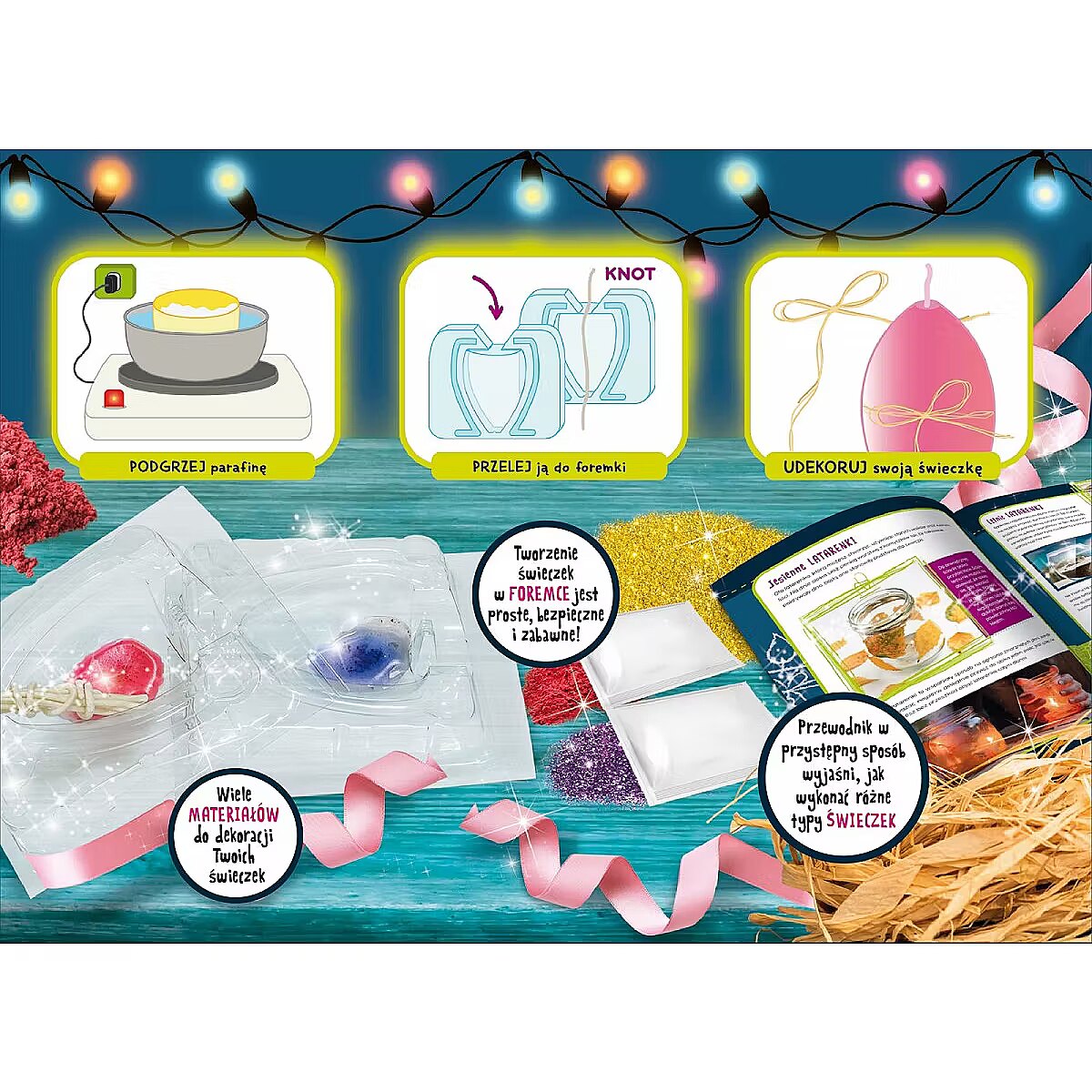 Description - Im a Genius Candle manufacture The educational set allows you to safely create scented candles that will be not only a great decoration, but also a unique, handmade gift for a loved one. The richly illustrated manual will explain step by step how to make various candles, using reagents that are safe for health. I'm a genius is a series that can be called the king in the category of scientific experiments and games. It is intended for school-age children and enriches a huge collection of traditional scientific games with educational products directly related to the world and the primary school curriculum.
