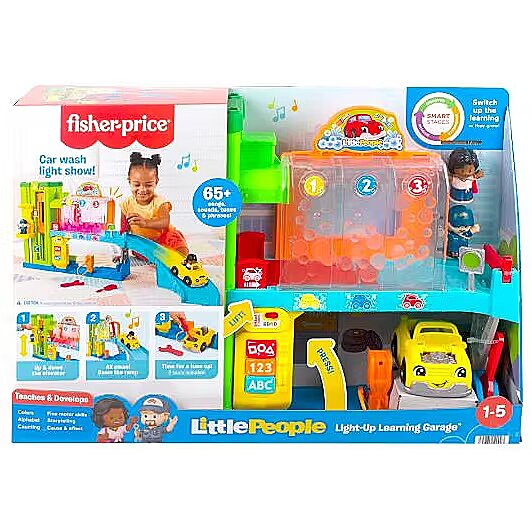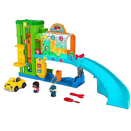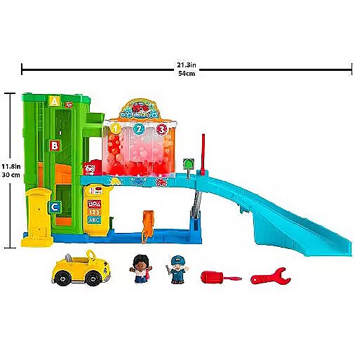 Description - At the Fisher-Price Little People Educational Car Wash, kids can refuel, inspect and wash their car, and then move on to the next adventure. Children will be delighted with the multi-colored lights and 3 learning levels (with songs, sounds and phrases) that enrich the fun with this interactive set. Little ones can make up fun stories with 2 figures, 2 mechanic's tools and a push car with opening hood. Interactive car wash with lights, music and learning levels for children aged 15 and over. 3 learning levels can be adapted to the child's age! Here you will find over 60 sound activations (songs, sounds and phrases) introducing colors, letters, shapes and everyday activities, all in Polish! When kids send the car to the car wash, multi-colored lights are activated. Children decide on the course of the game: they transport the figures and cars up and down in the elevator, slide the cars down the track, refuel or charge the vehicle at the station, and perform inspections using a screwdriver and a wrench. The set includes 2 figures, 2 play elements and a push vehicle with an opening hood, which increase the realism of the game.