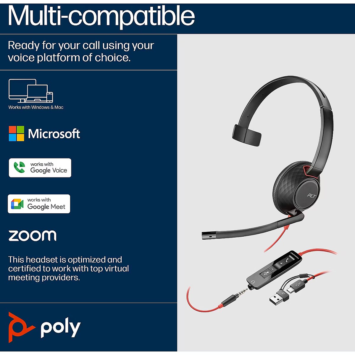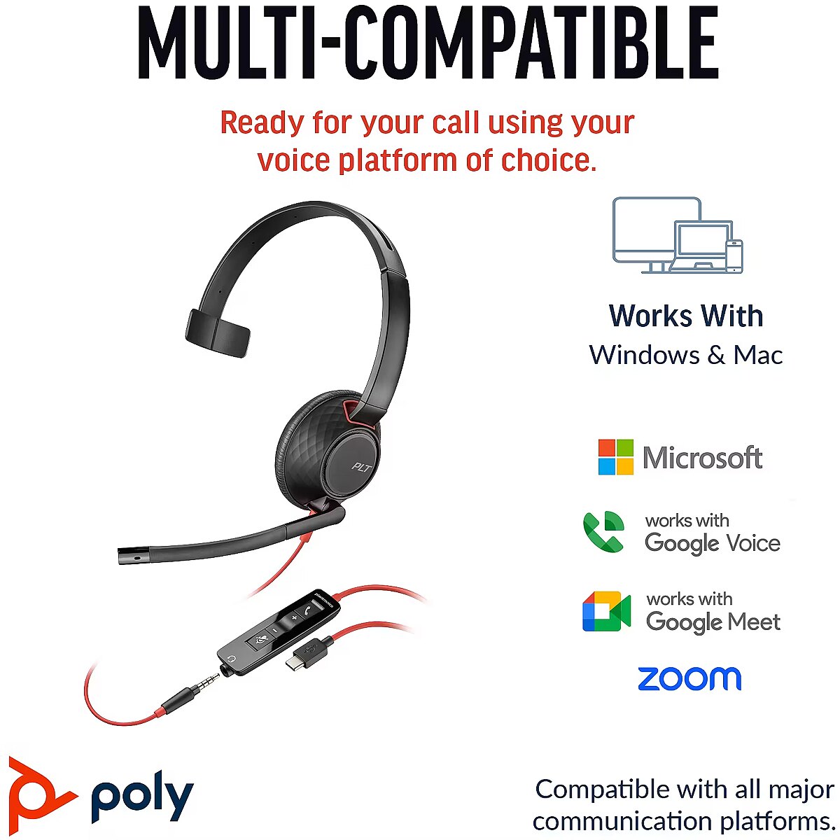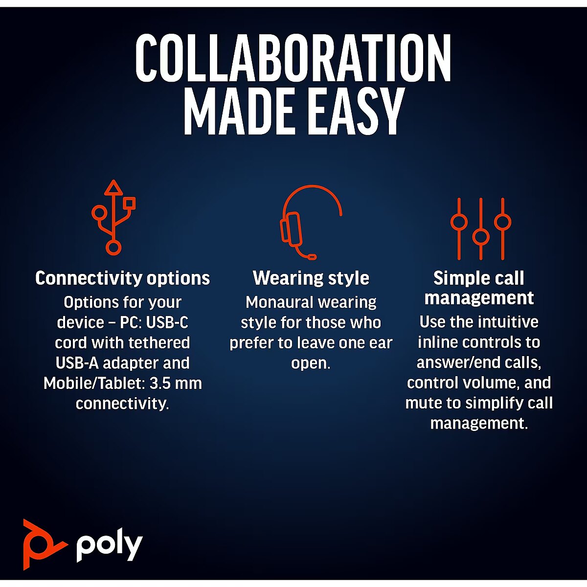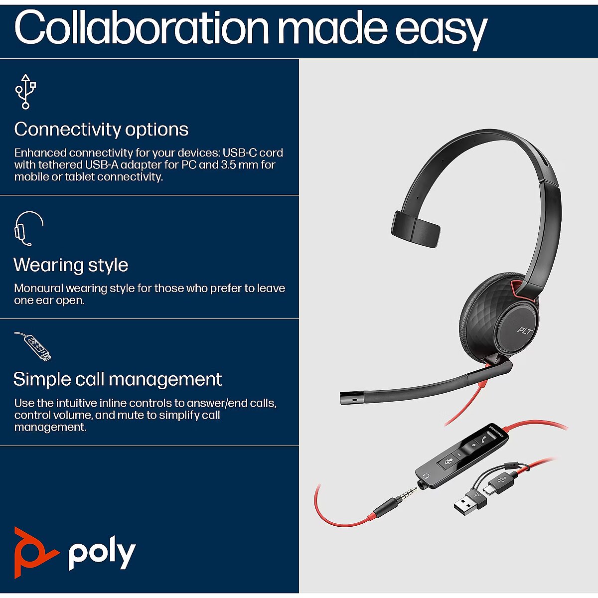 Title - POLY Blackwire 5210 Monaural USB-C Headset +3.5mm Plug +USB-C/A Adapter