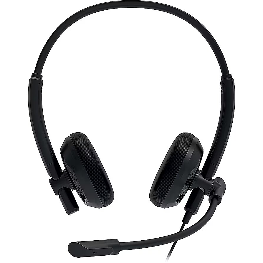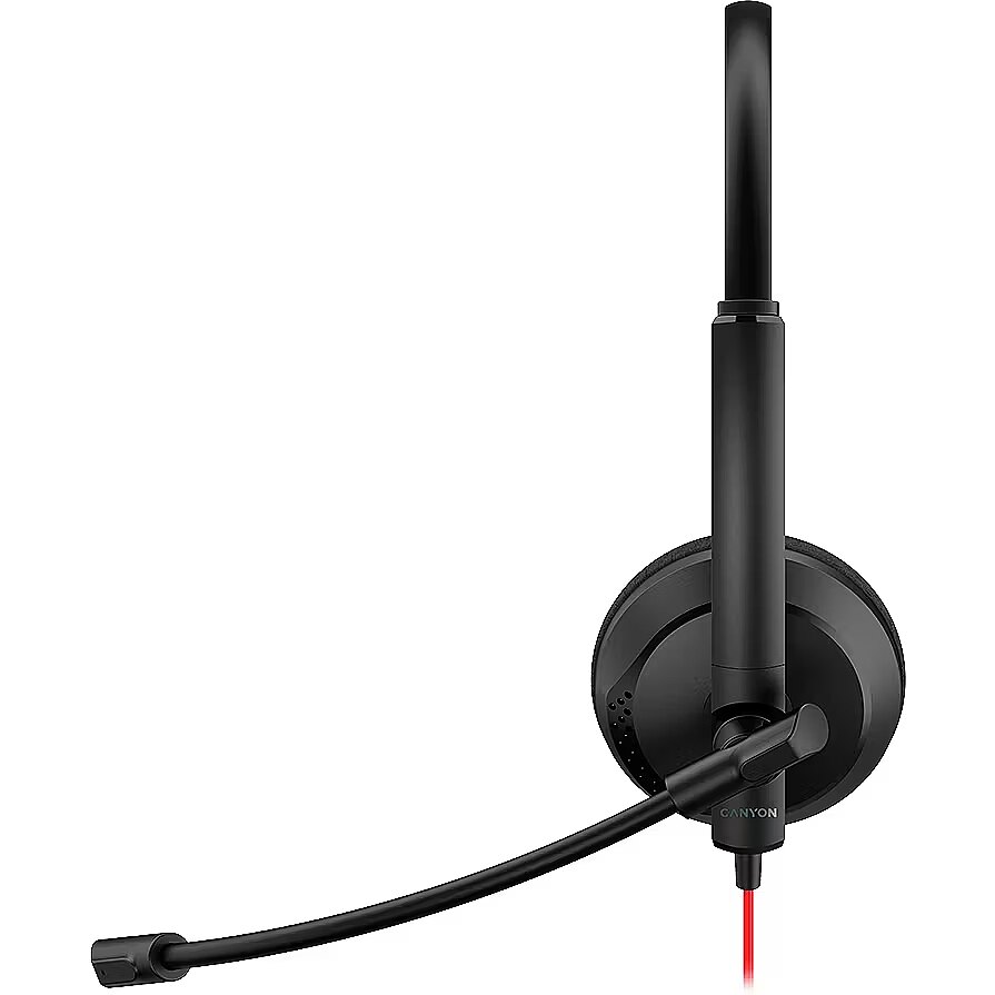 The headphones connection to the computer. A cable for a long-term and stable sound experience is the most popular type of connection.
