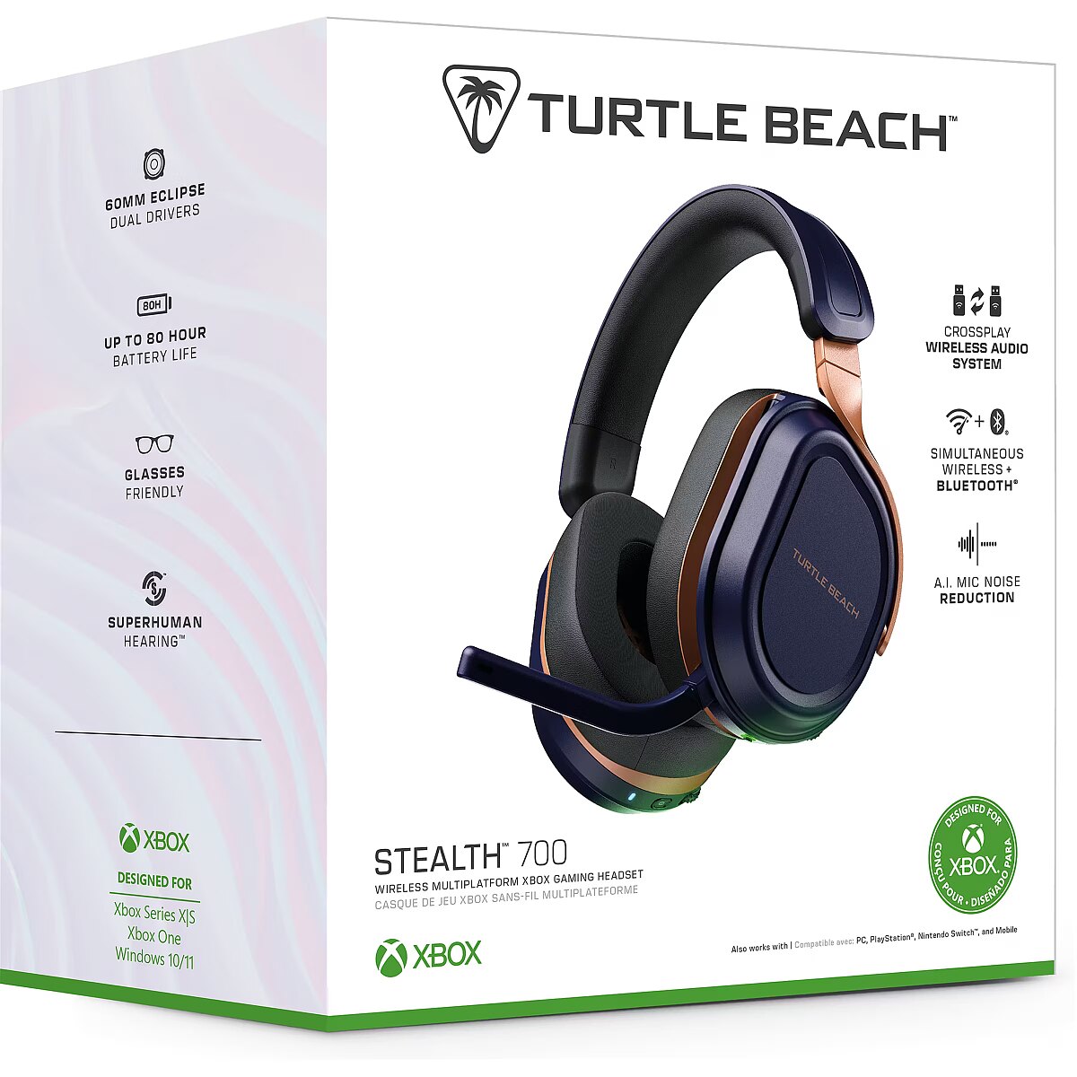 The Turtle Beach® Stealth™ 700 wireless multiplatform gaming headset delivers unmatched audio & mic quality for Xbox®, PlayStation®, PC, Steam Deck™ and mobile. CrossPlay Multiplatform Wireless Audio System