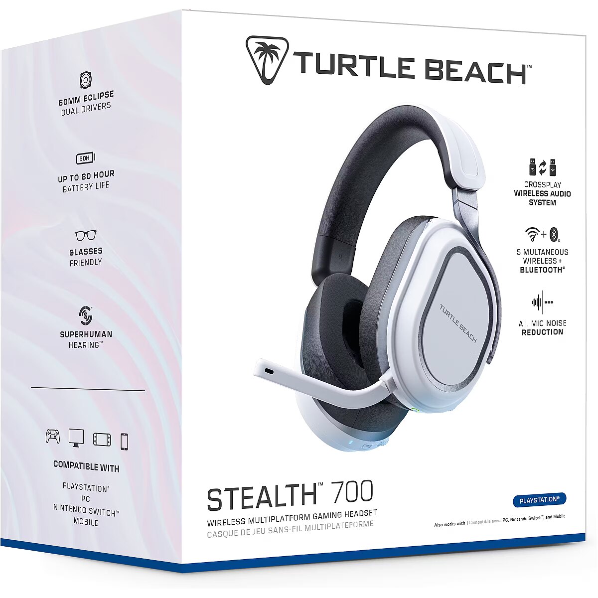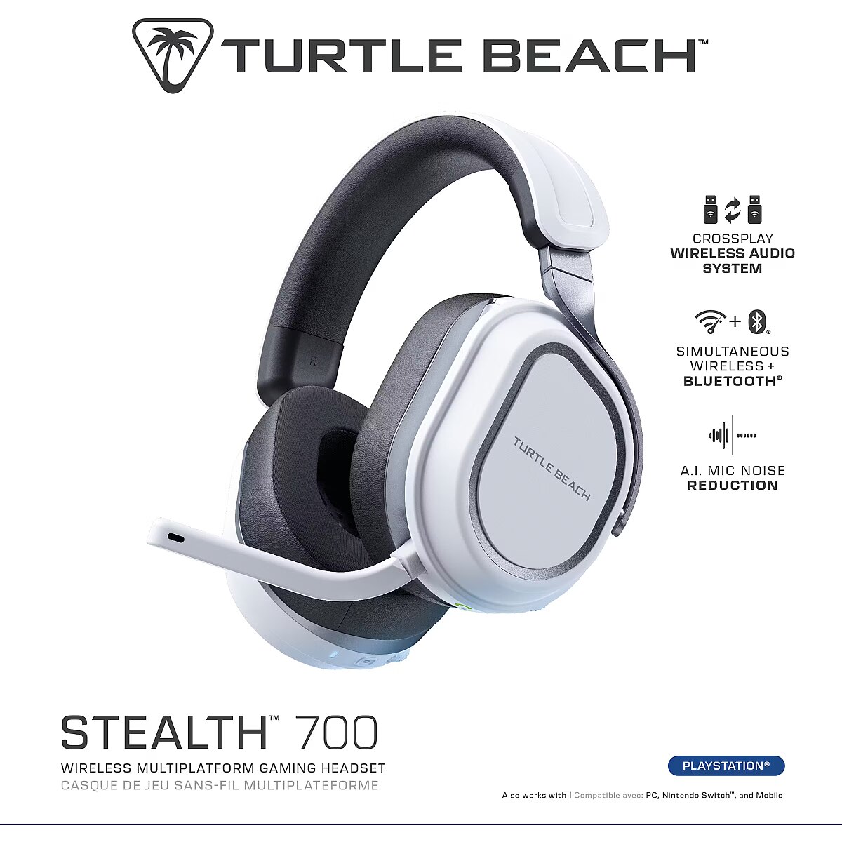 The Turtle Beach® Stealth™ 700 wireless multiplatform gaming headset delivers unmatched audio & mic quality for PlayStation®, PC, Steam Deck™ and mobile. CrossPlay Multiplatform Wireless Audio System​