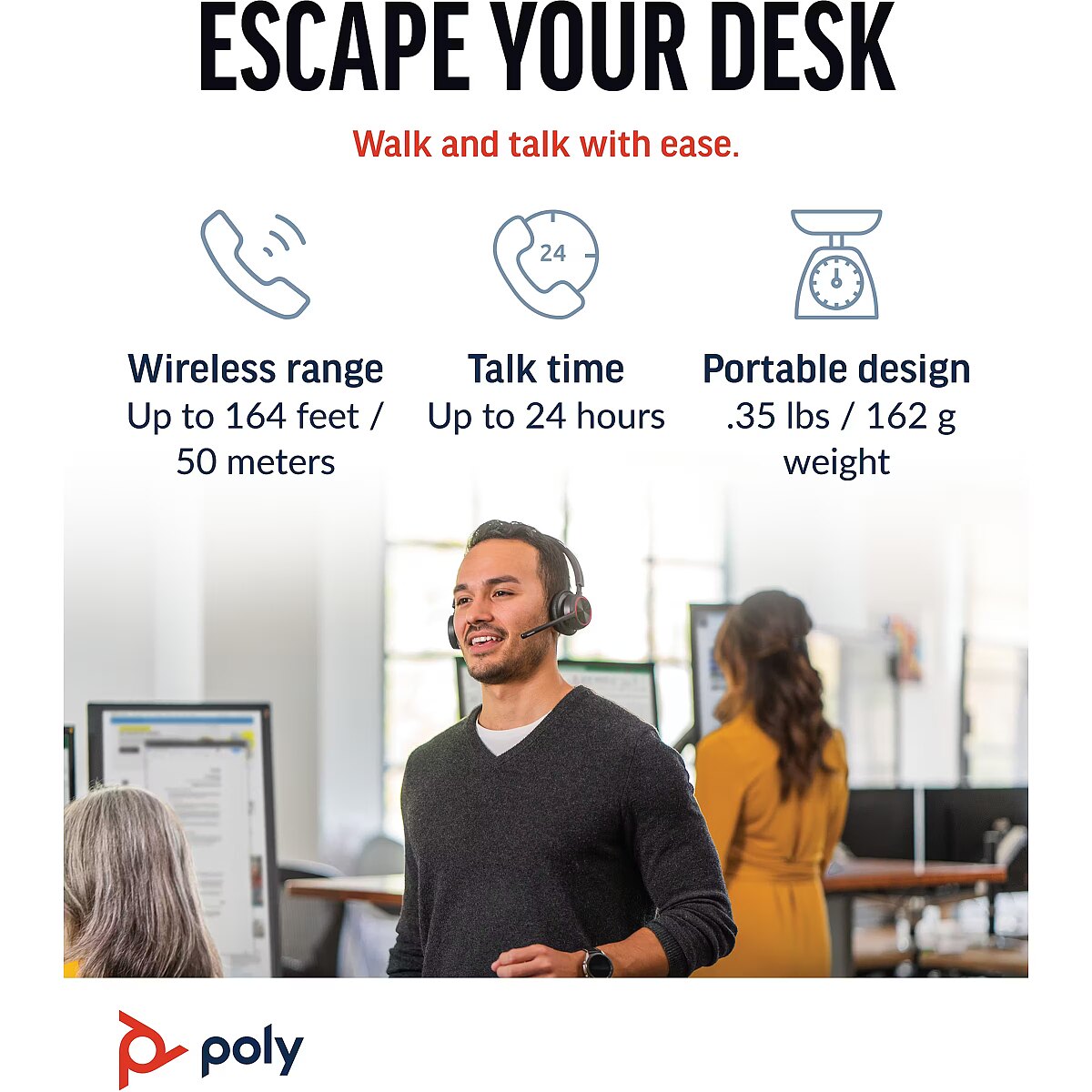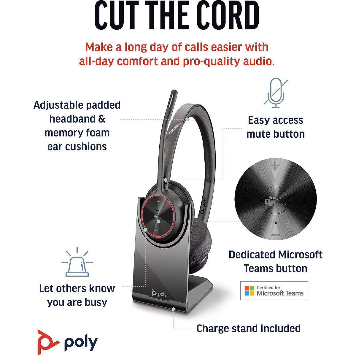 LongDesc - Cut wires. Cut Costs.Free your workers from their desks with the entry-level Bluetooth wireless headset. Meet the Voyager 4300 UC Series. It’s everything your teams need to stay productive and connect to all their devices whether at home or in the office.