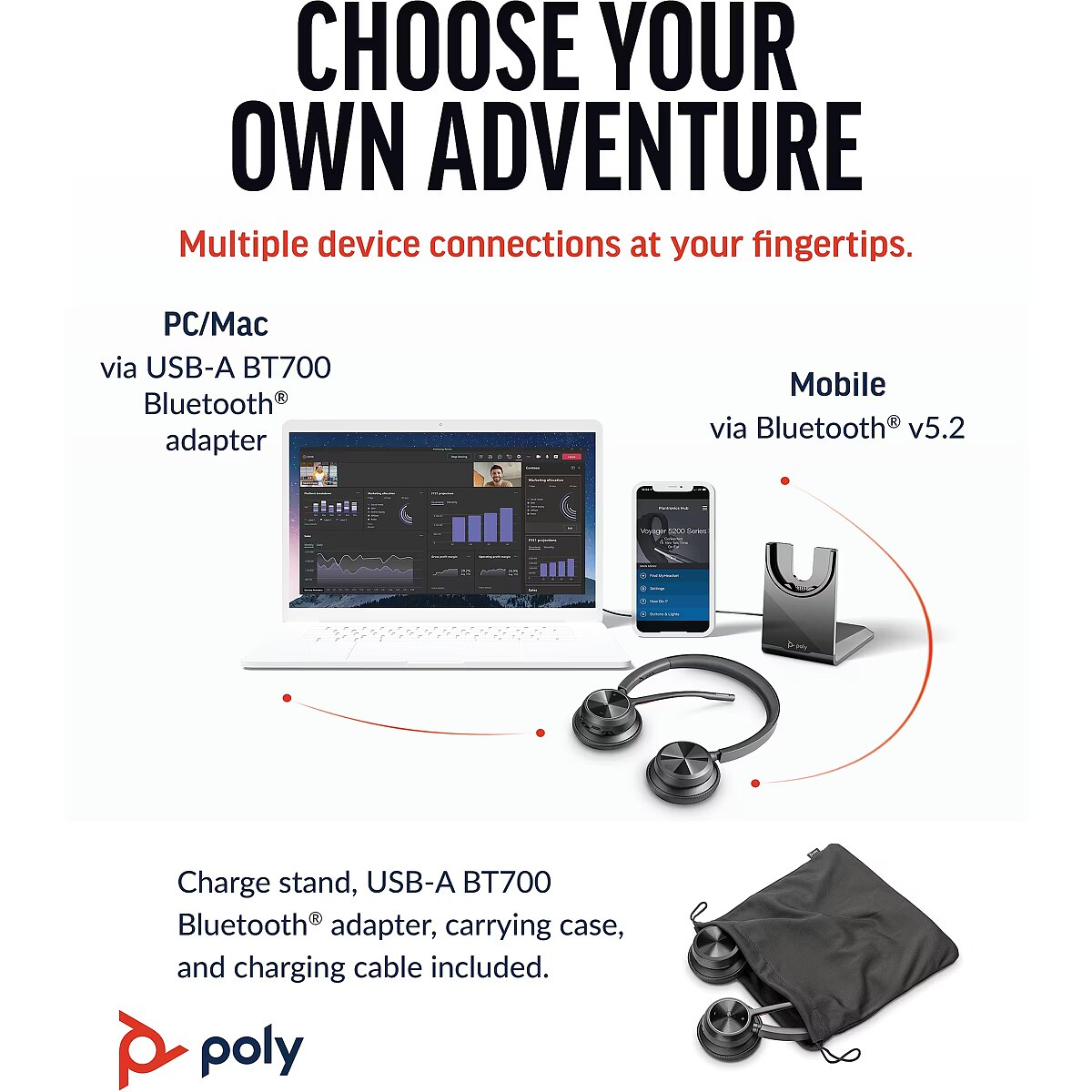 Title - HP Poly Voyager 4320 UC Stereo USB-A Headset +BT700 USB-A Adapter +Charging Stand