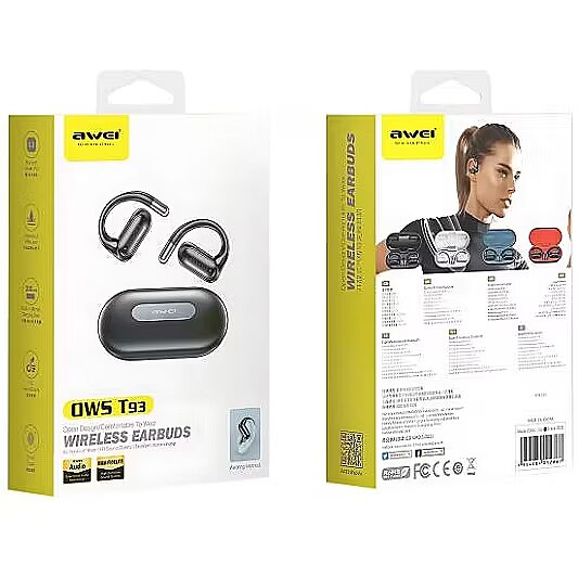 Other features - Brand: AWEI Model: T93 Type: Wireless Headphones Bluetooth Version: 5.3 Transmission Range: 10 m Talk Time: 4 hours Music Playback Time: 5 hours Charging Time: 2 hours Standby Time: 300 hours Case Battery Capacity: 300 mAh Headphone Battery Capacity: 35 mAh